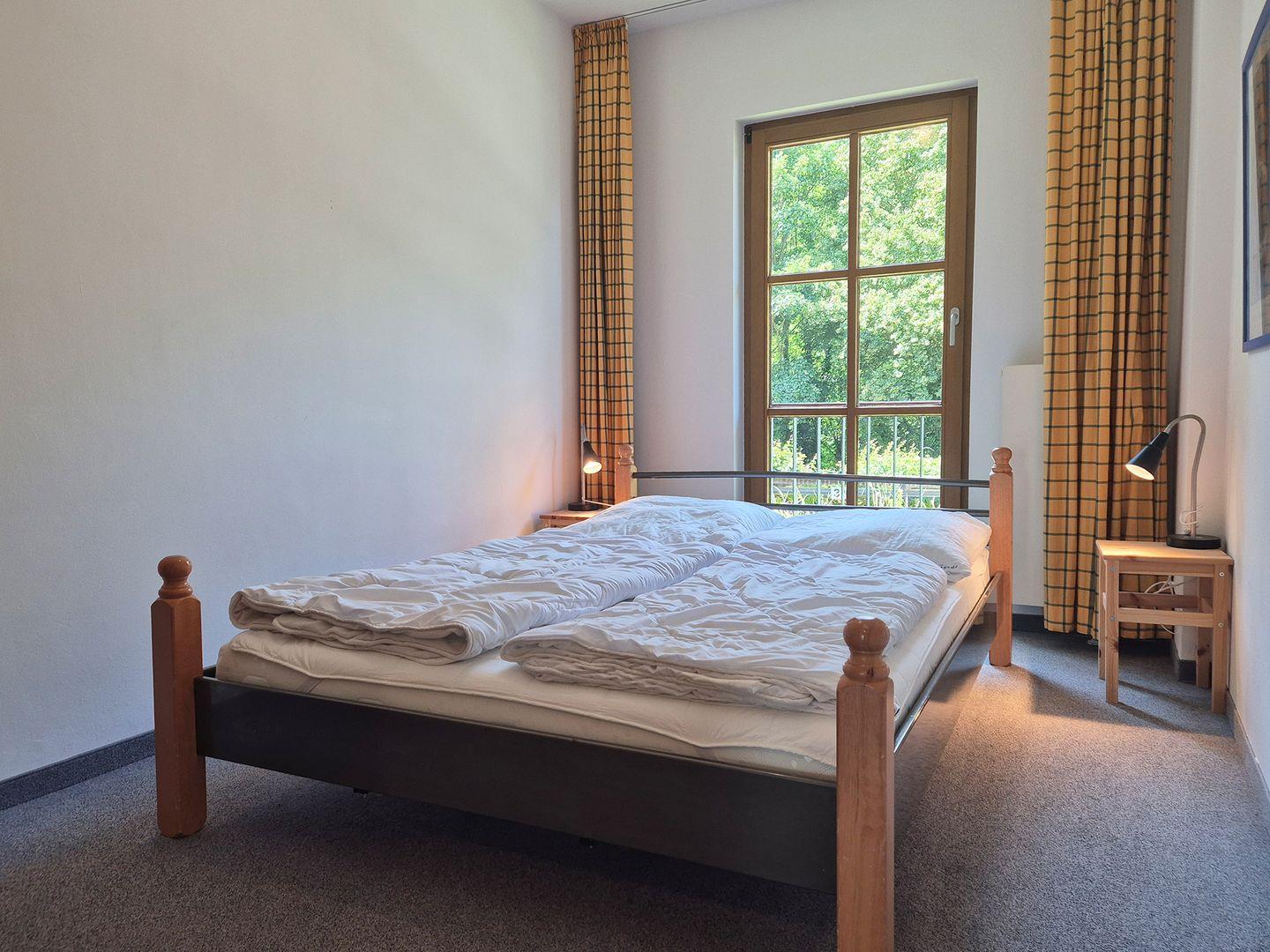 Das erste Schlafzimmer ist mit einem Doppelbett ausgestattet, das zweite verfügt über ein französisches Bett. Ein Kinderreisebett in Standardgröße ist ebenfalls vorhanden. Das Badezimmer ist ein Vollbad mit Fußbodenheizung.