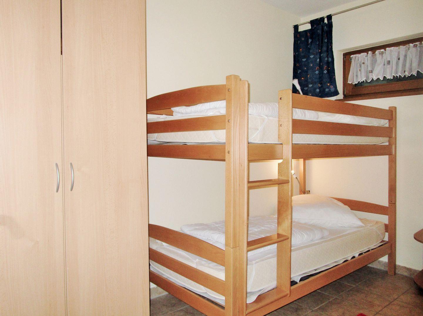 Das separate Schlafzimmer ist mit einem bequemen Etagenbett für 2 Personen, Nachttischen sowie einem Kleiderschrank eingerichtet.