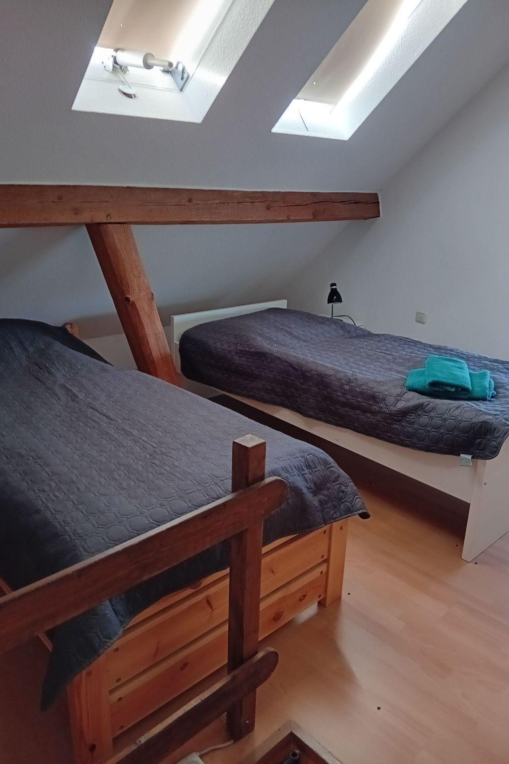 Our holiday flat on the upper floor is equipped with everything you need for a pleasant self-catering holiday. The use of the washing machine allows you to easily manage your luggage even during longer stays. The kitchen facilities include a three-ring hob, a filter coffee machine and a kettle so that you can start your day with a favourite ritual in the morning. The flat has a bathroom with shower to freshen up after a day of exploring.