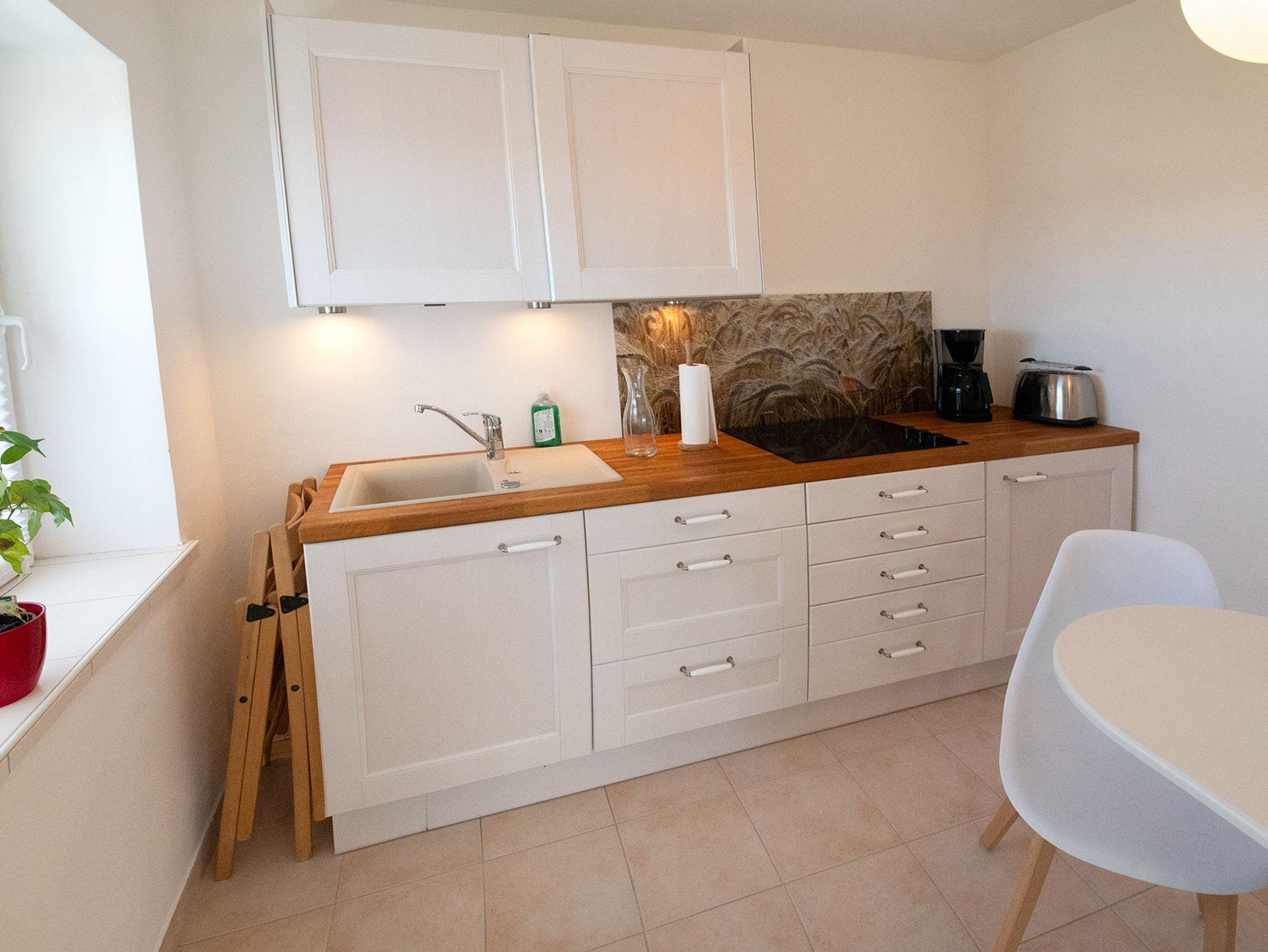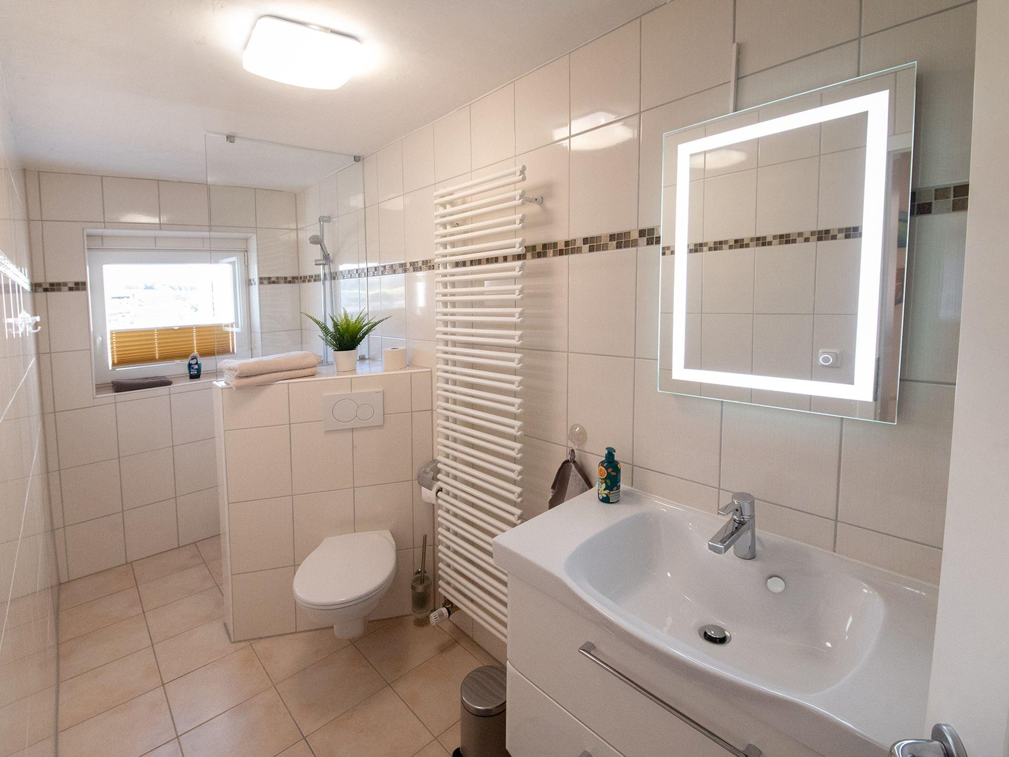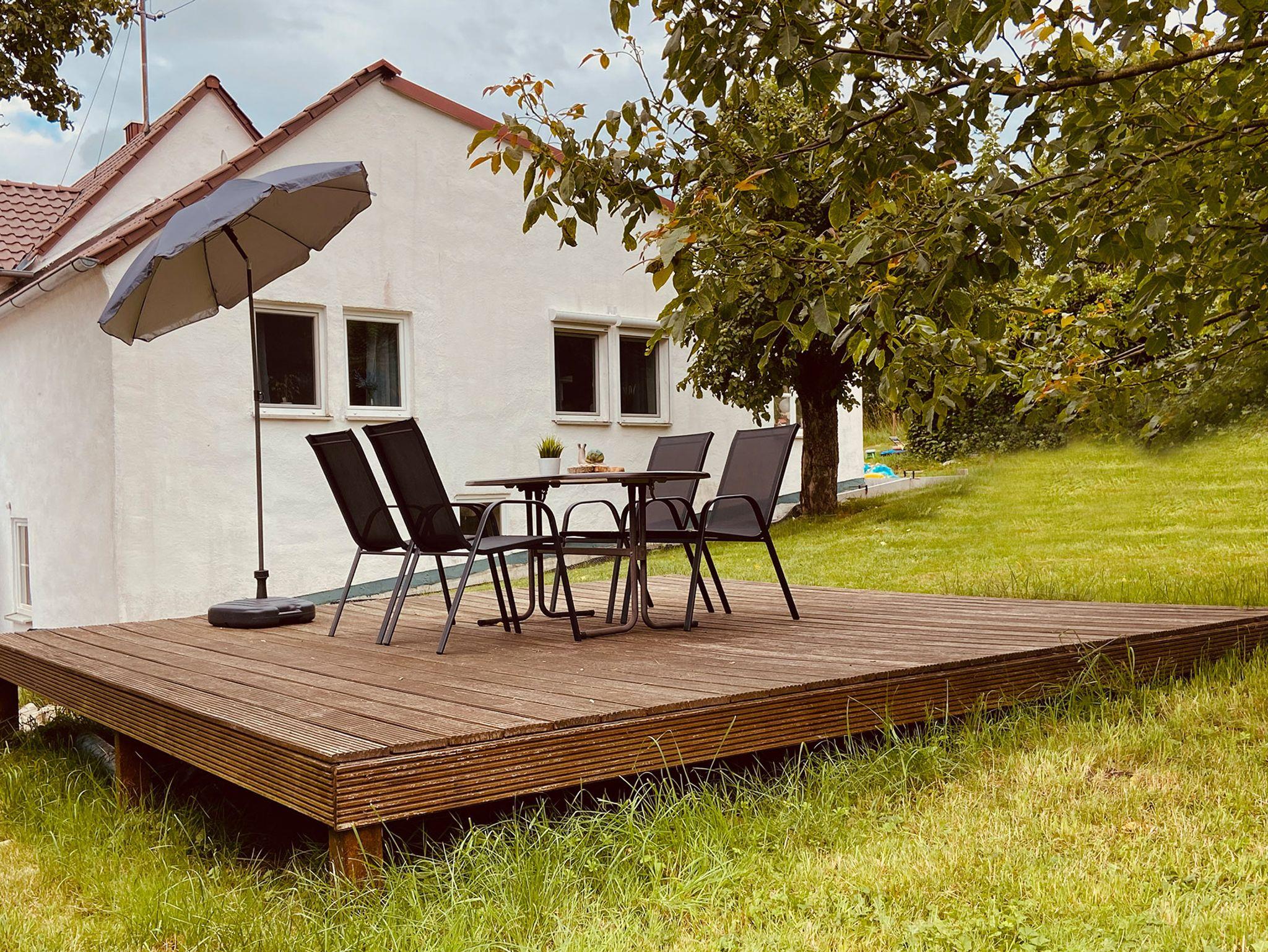 Unsere gemütliche Ferienwohnung mit 53 m² Wohnfläche befindet sich im Erdgeschoss und bietet Platz für 1-4 Personen. Die komplett ausgestattete Wohnküche mit Kühlschrank, Herd, Mikrowelle, Wasserkocher und Kaffeemaschine lässt keine Wünsche offen. In der Wohnküche befindet sich eine kleine Essgruppe mit schönem Blick in unseren Garten. Die Ferienwohnung verfügt insgesamt über 1 Schlafzimmer mit einem Doppelbett und einem Einzelbett. Der Wohnschlafraum mit Schlafcouch ca. 140 cm, einem Fernseher und einer gemütlichen Sitzgruppe runden das Gesamtbild ab. Vor allem im Sommer können Sie entspannte Abende auf der großen Terrasse ausklingen lassen. Das barrierefreie Badezimmer verfügt über eine Dusche und ein WC. Bettwäsche, Handtücher, kostenfreie WLAN-Nutzung, und Parkplatz sind im Preis enthalten.