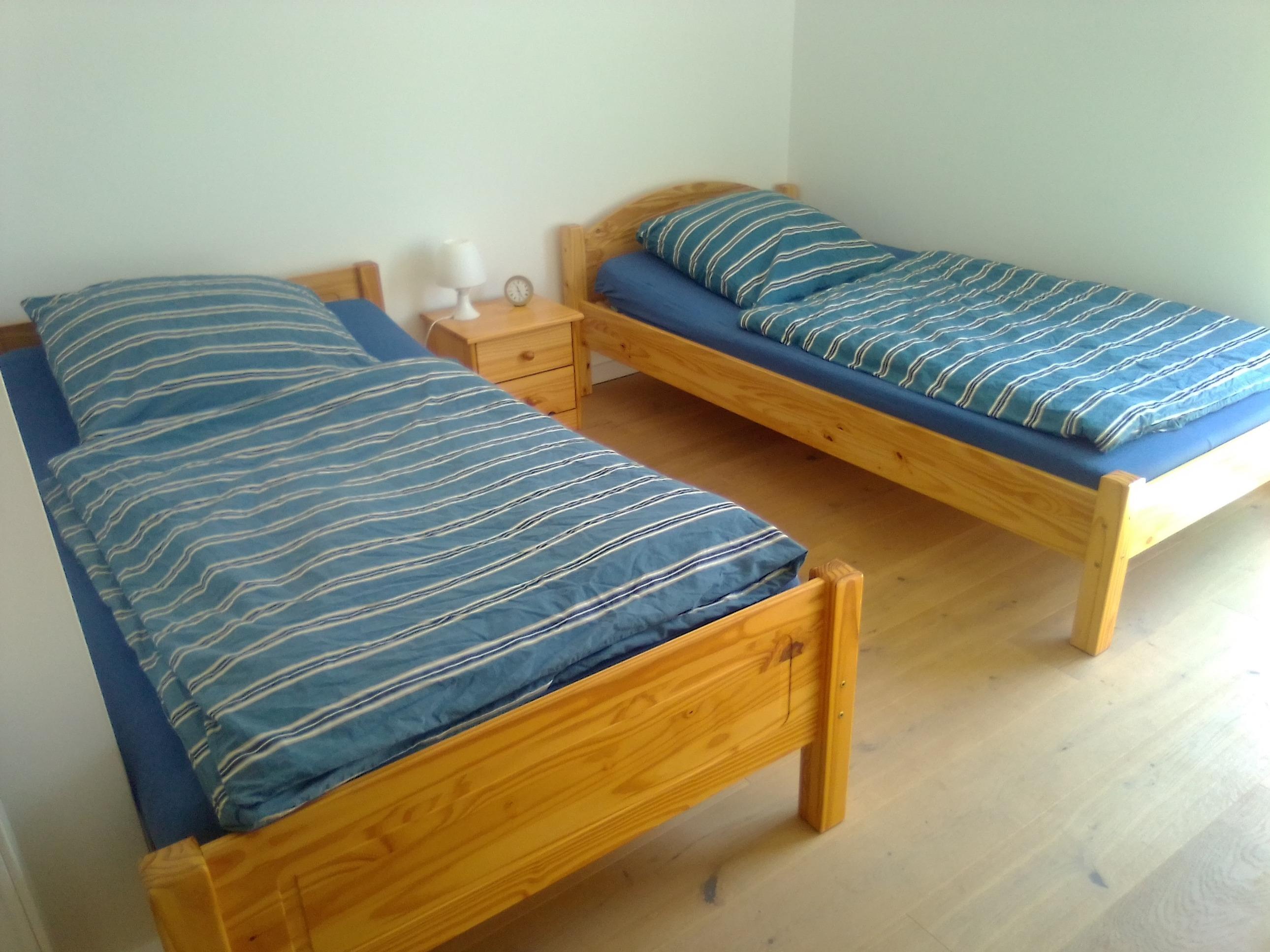 Schlafzimmer: 2 Einzelbetten (je 1x2m), Kleiderschrank, Kommode