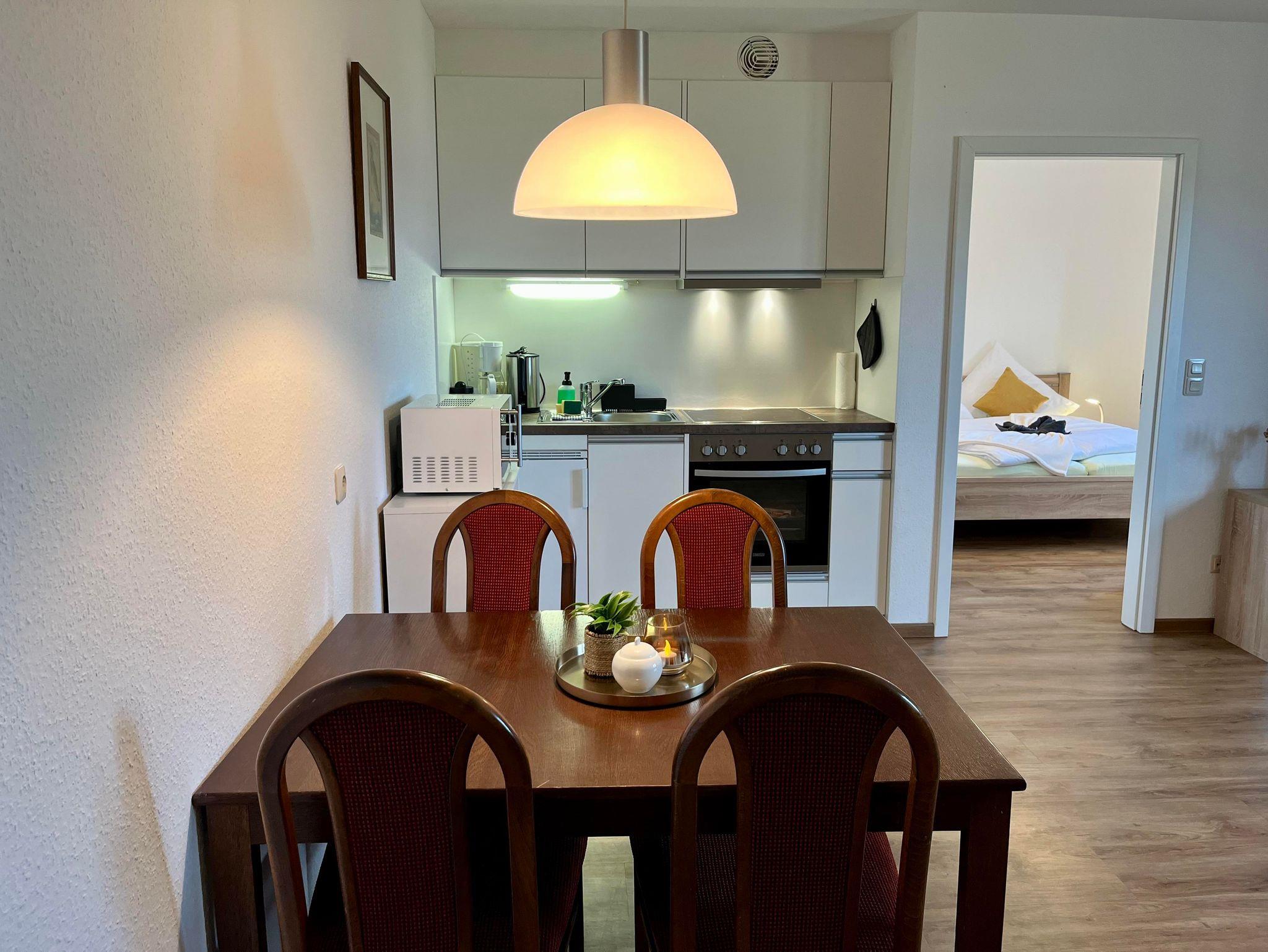 Dabei haben wir auf natürliche Materialien und ein harmonisches Farbkonzept geachtet. Der Wohnraum mit offener Küche sorgt für ein gutes Raumgefühl. Damit Sie sich sofort wohl fühlen und Ihren Aufenthalt von Beginn an genießen, stehen Ihnen bei Ihrer Ankunft ausreichend Parkplätze direkt am Haus zur Verfügung und im Ferienapartment warten Mineralwasser, Tee und Kaffee auf Sie.