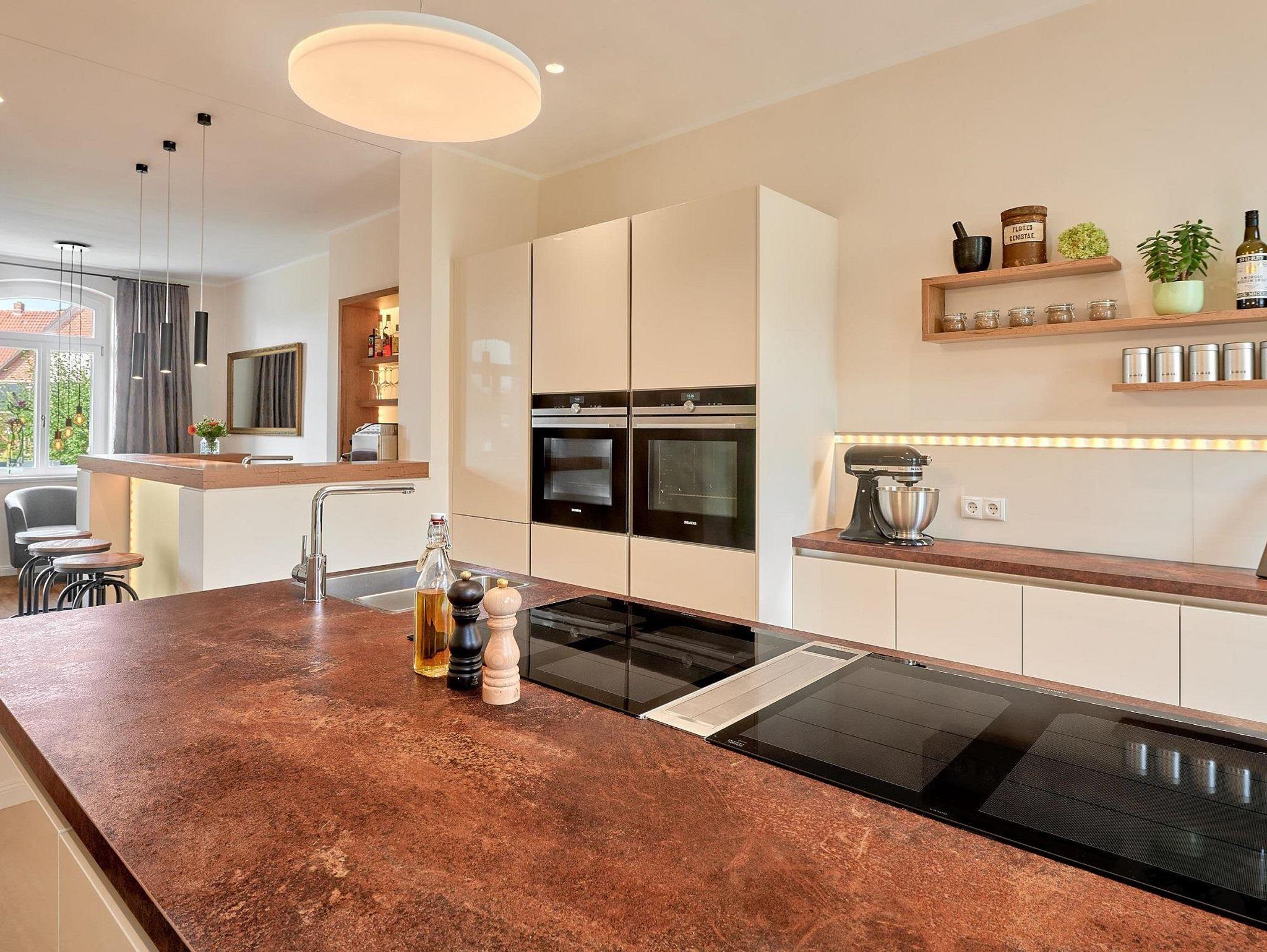 Das Erdgeschoss hat eine große offene Küche mit Kochinsel und einen direkten Zugang zur nach Süden ausgerichteten und überdachten Terrasse mit einem Weber-Gasgrill. Die Küche ist super ausgestattet – zwei Induktionsherde, ein Backofen mit Dampf- und ein weiterer mit Mikrowellenfunktion, zwei Geschirrspülmaschinen, zwei Wärmeschubladen, eine Kitchenaid-Küchenmaschine mit Zubehör, diverse Kleingeräte, Backformen und vieles mehr. Hier machen kochen und backen Spaß!