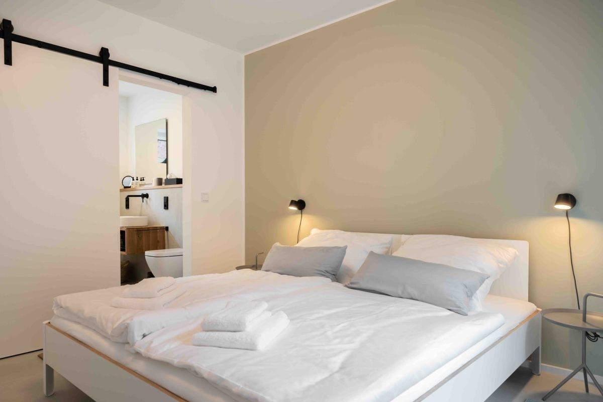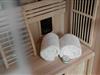 Schlafzimmer mit anliegendem Badezimmer und Infrarotsauna