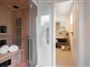 Schlafzimmer mit anliegendem Badezimmer und Infrarotsauna