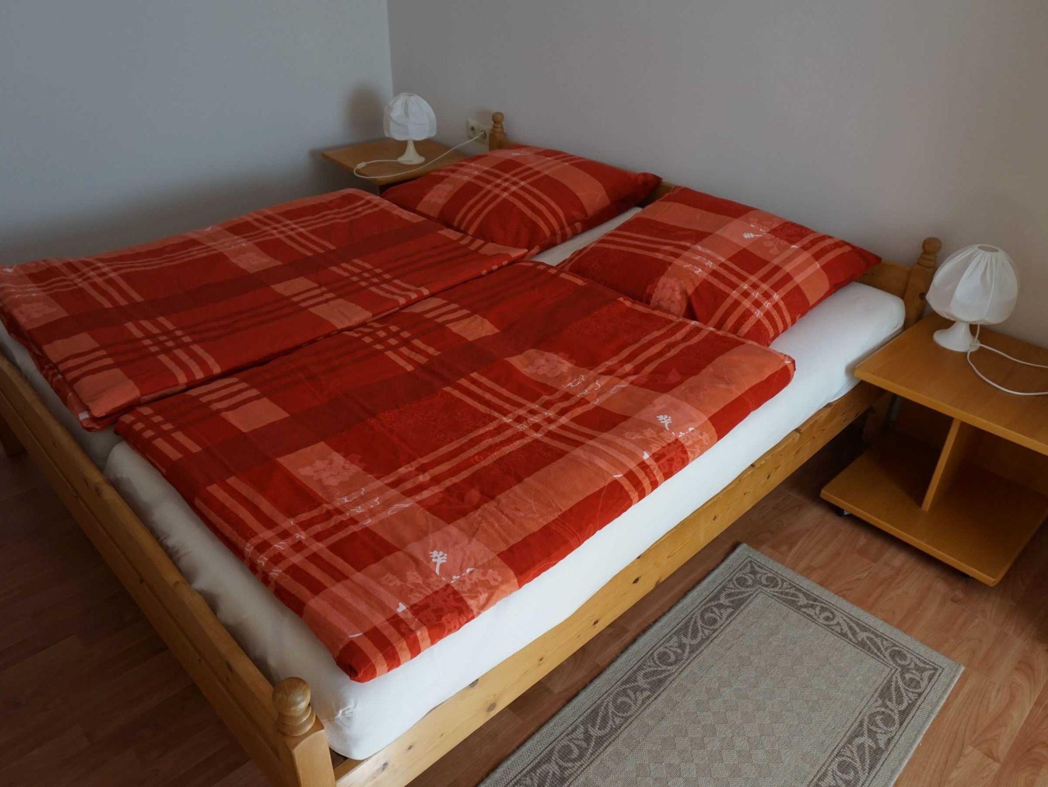 Schlafzimmer: 1 Doppelbett (180 x 200cm), 2 Nachtkonsolen, 1 Kleiderschrank