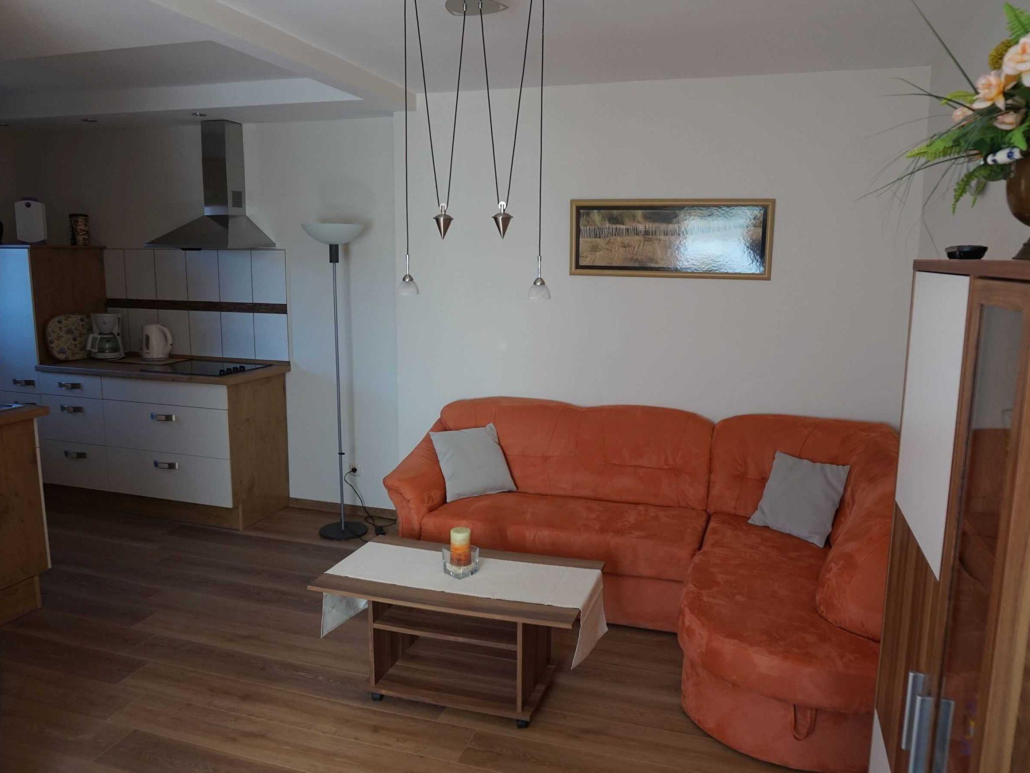 Wohnzimmer: SAT-TV digital, Flachbild-Fernseher, Essbereich für 2 Personen, Ecksofa