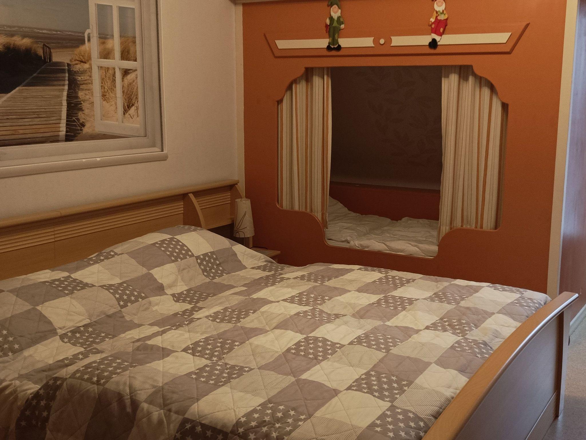 Allergiefreundlich; die Wohnung wurde Anfang 2005 neu renoviert; keine Teppichböden; keine Federbetten; 2 Schlafzimmer je 3 Betten und Zustellbett. 1 Wohnraum mit Essecke, Sitzecke, TV und Radio; Balkon mit Gartenmöbeln; Die Küche ist vollständig eingerichtet mit Spülmaschine, Backofen, Mikrowelle usw.; Dusche/WC; Bettwäsche und Handtücher gegen Entgelt erhältlich; pro Bett einmalig 6,-; Waschmaschine für alle Gäste pro Waschgang 2,50; Stromkosten nach Verbrauch.