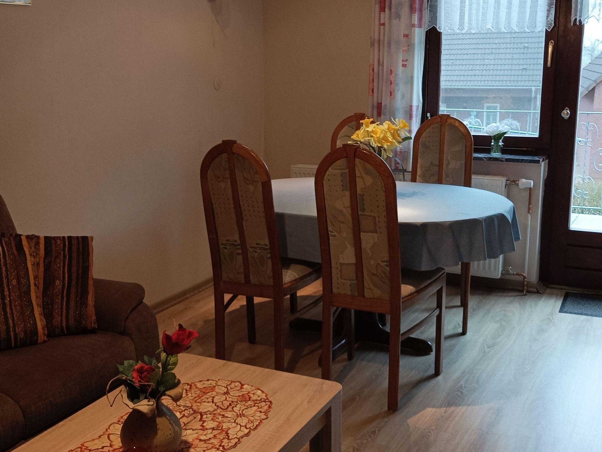 Die Wohnung befindet sich in der ersten Etage und bietet Platz für 4-5 Erwachsene sowie einem Kind. Eingeteilt ist diese in ein Wohnzimmer, zwei Schlafzimmer, Küche und ein Badezimmer und ein Gäste-WC.