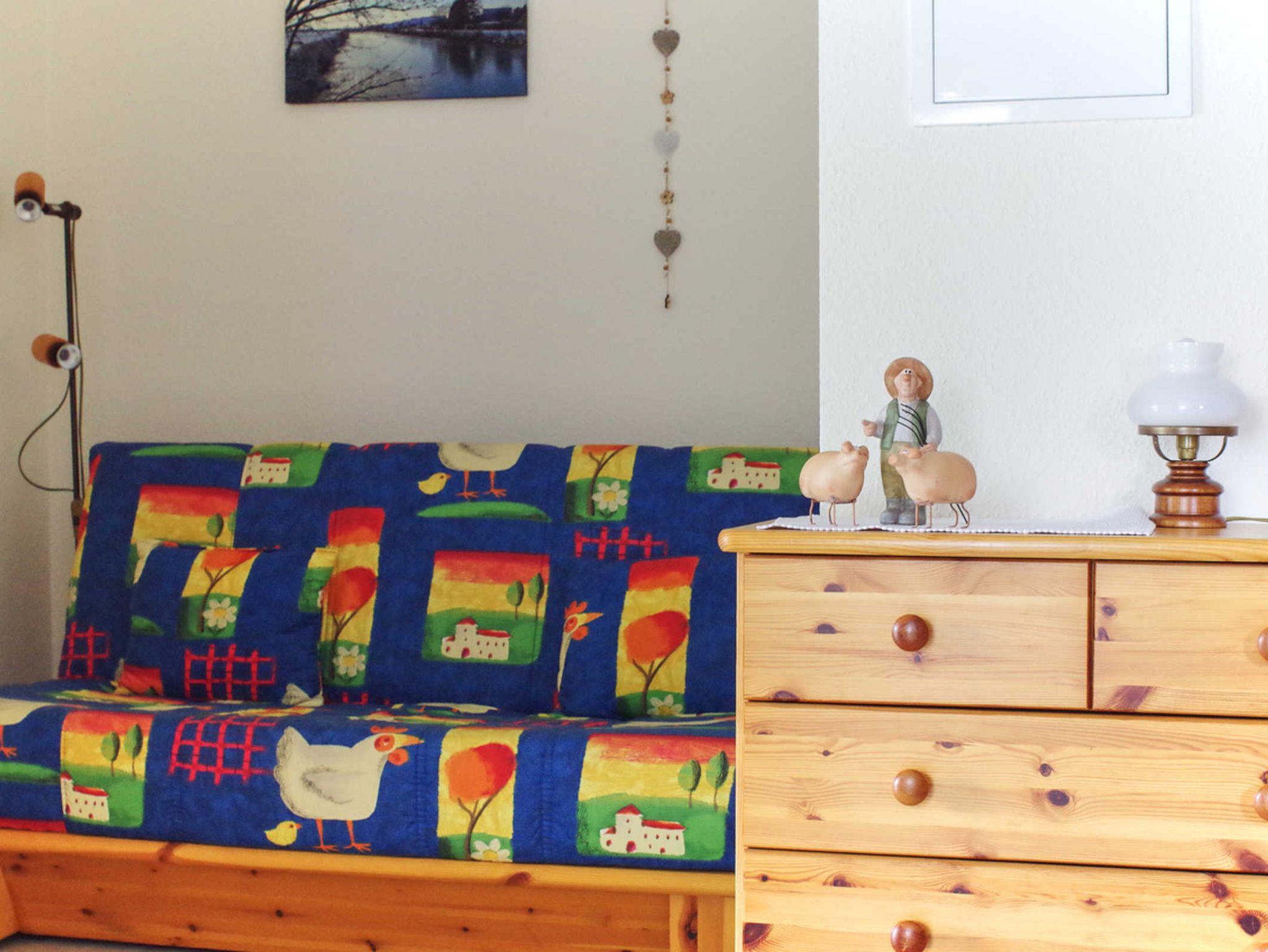 Im Erdgeschoss erwartet Sie ein gemütlich eingerichteter Wohn-/Essbereich mit Sat-TV. Die Küchenzeile verfügt über jeglichen Komfort wie z.B. Geschirrspülmaschine, Vierplattenherd mit Backofen, Kühlschrank mit 3 Sterne-Gefrierfach, Mikrowelle und div. elektrische Geräte. Als Schlafdomizil dient ein schöner Schlafraum mit Doppelbett (1,8 m x 2 m) und zusätzlich ein sep. stehendes Schlafsofa (1,40m x 2m Spannlaken ist vorhanden). Das neuwertige Bad ist mit Dusche, Bidet und WC ausgestattet. Ergänzt wird die Wohnung durch einen separaten Vorrats- und Geräteraum, sowie Rollläden und Fliegenschutzgitter an den Fenstern. Terrasse mit Gartenmöbeln, Markise und Elektro-Grill stehen Ihnen zur Verfügung.