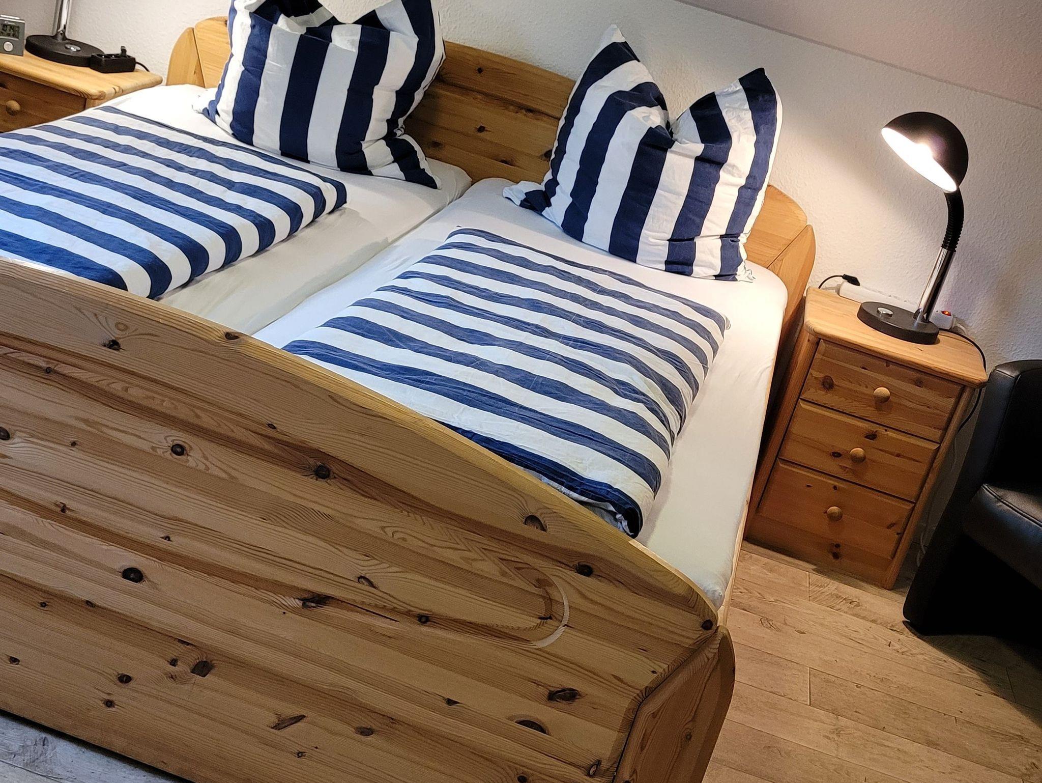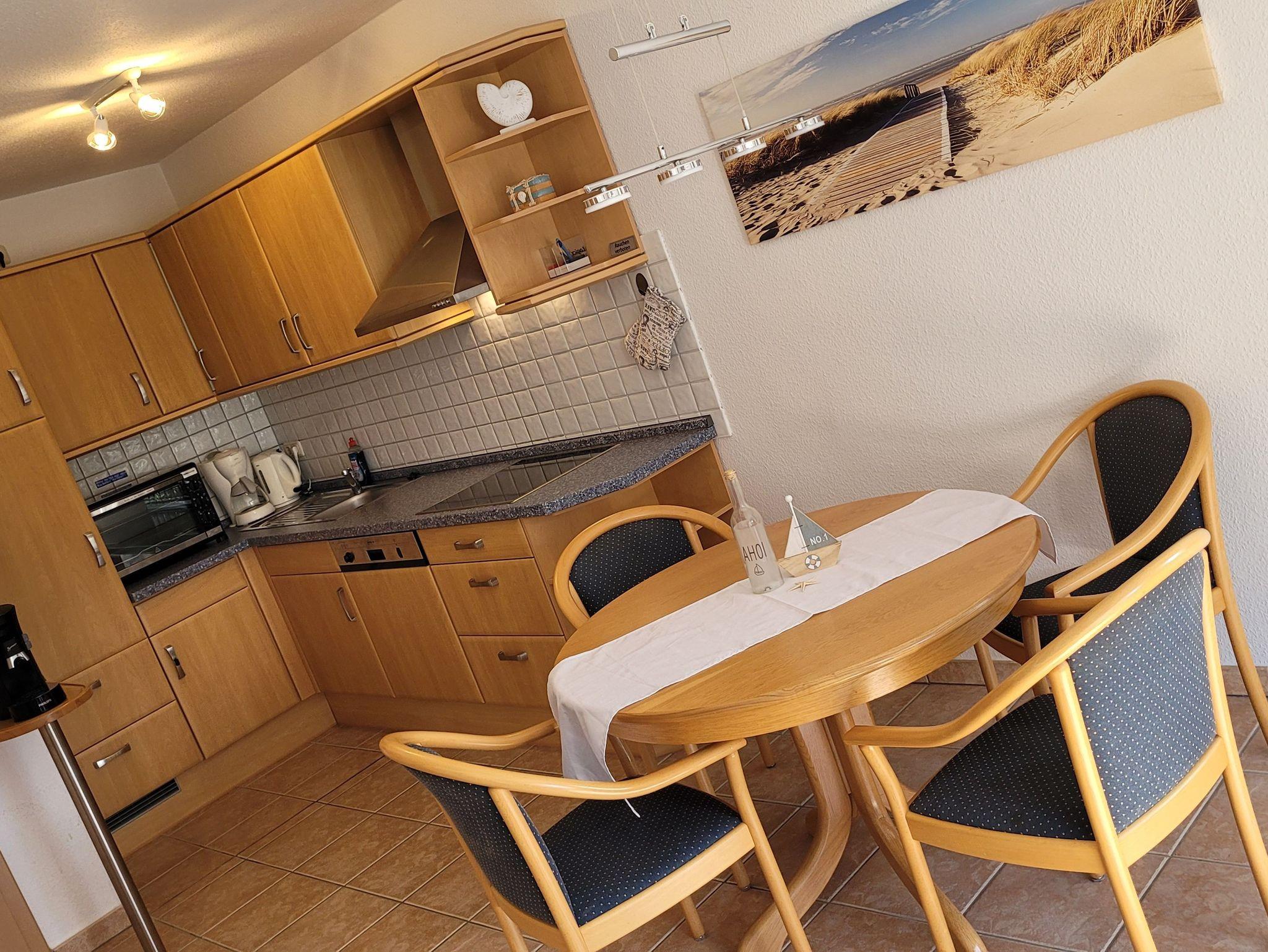 Im Erdgeschoss befindet sich der ansprechende Wohn- und Essbereich mit angrenzender, offener gut ausgestatteter Küche. Von dort geht es direkt auf die windgeschützte Terrasse. Das Erdgeschoss bietet zusätzlich ein Gäste-WC und einen Abstellraum mit Waschmaschine gegen Gebühr. Im Obergeschoss gibt es ein Schlafzimmer mit Doppelbett und ein weiteres Schlafzimmer mit zwei Einzelbetten und einem Dusch-Bad.