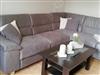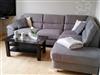 Wohnzimmer: Ecksofa, antike Kommode, Wohnzimmertisch, SAT-TV digital, Flachbild-Fernseher