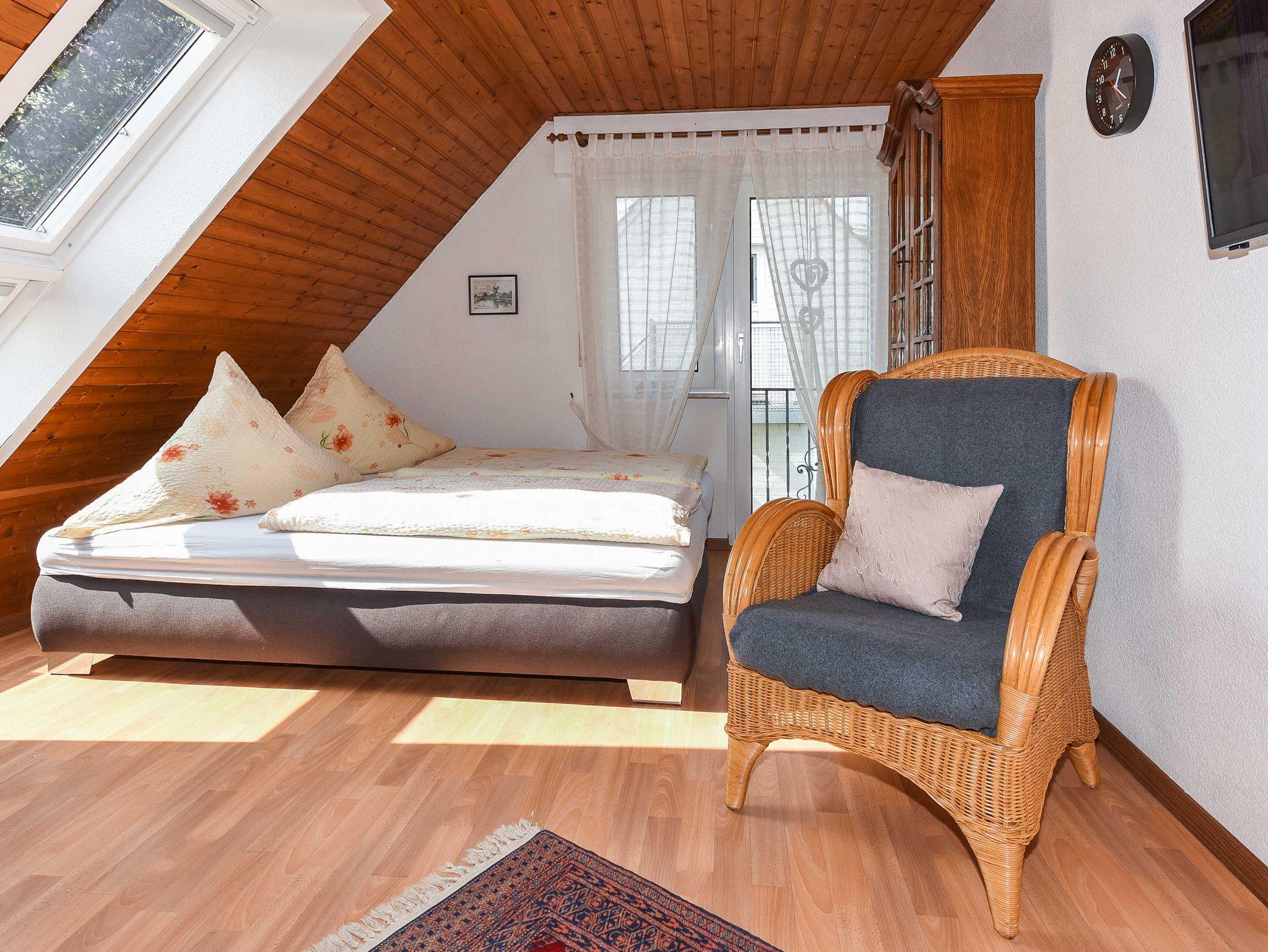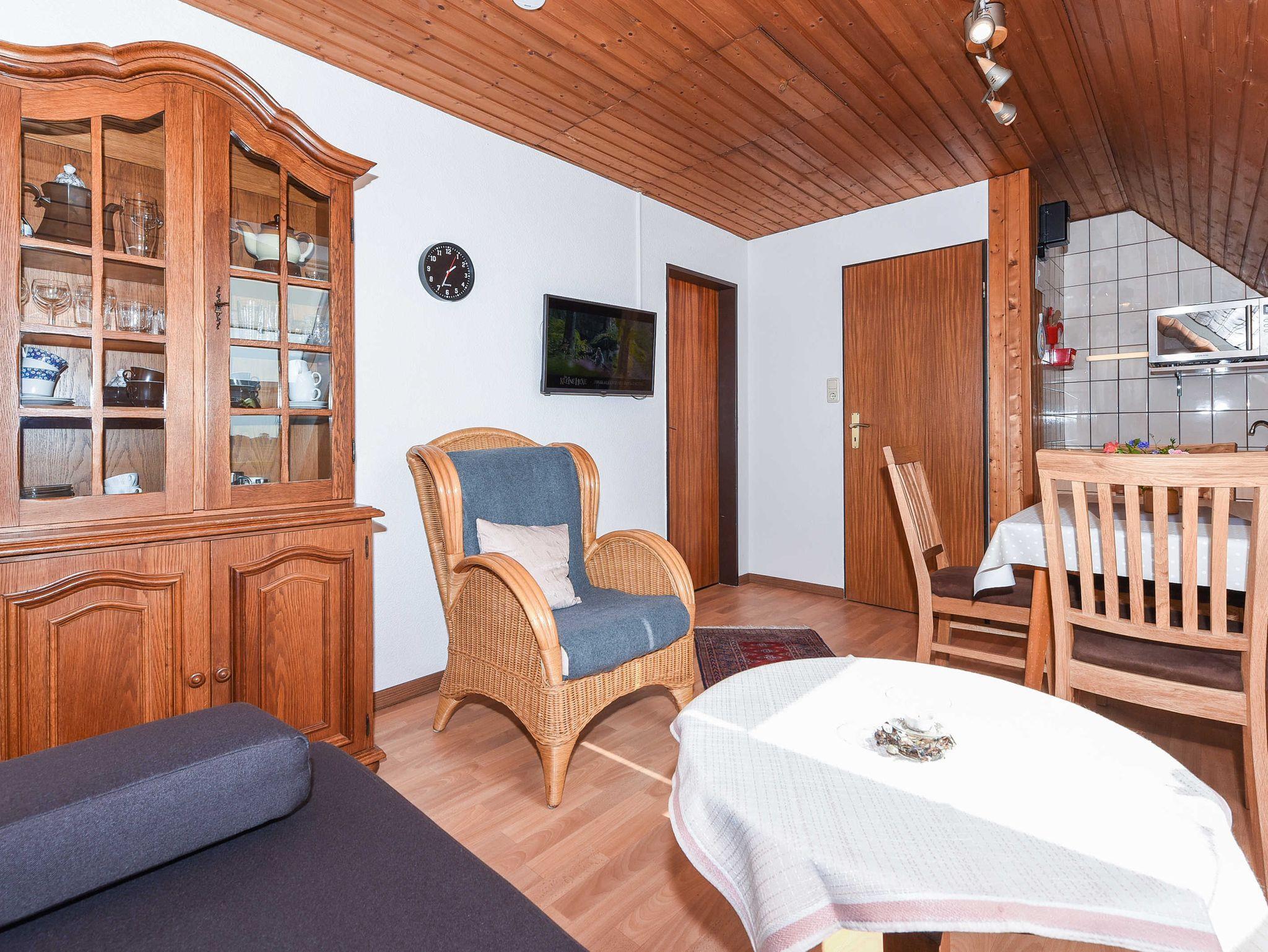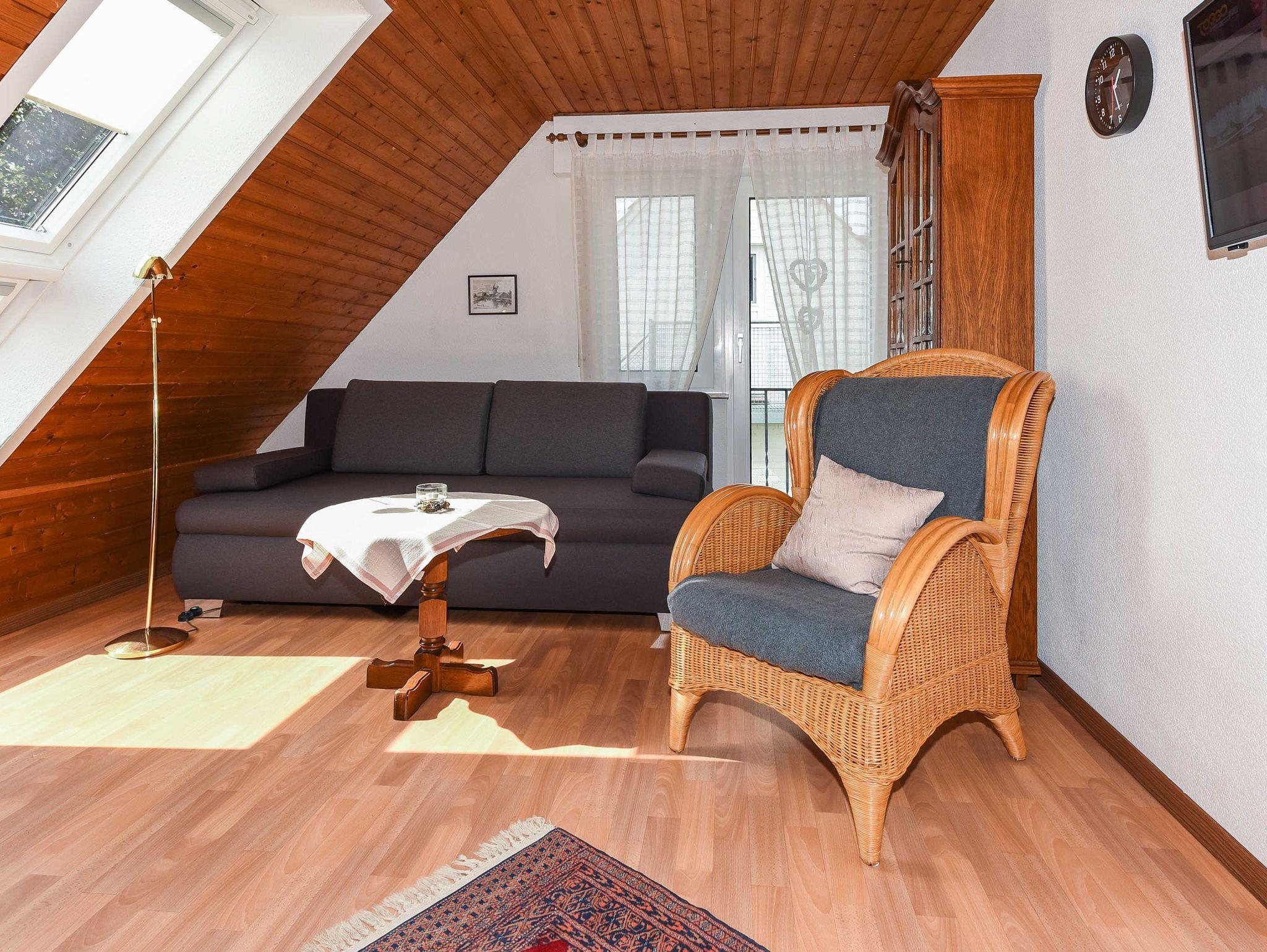 Größe ca. 41 Quadratmeter, Wohnraum mit integrierter Küche und Essgruppe, Schlafzimmer, Badezimmer mit Dusche, Waschtisch und WC, Obergeschoss, optimal für 2 bis 3 Personen und zusätzlich ein Kleinkind.