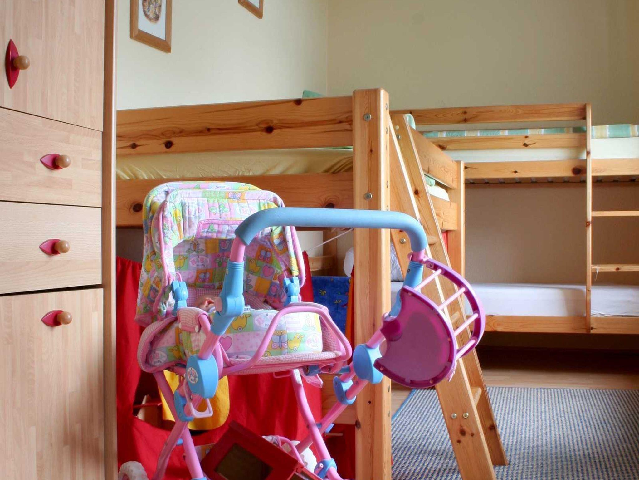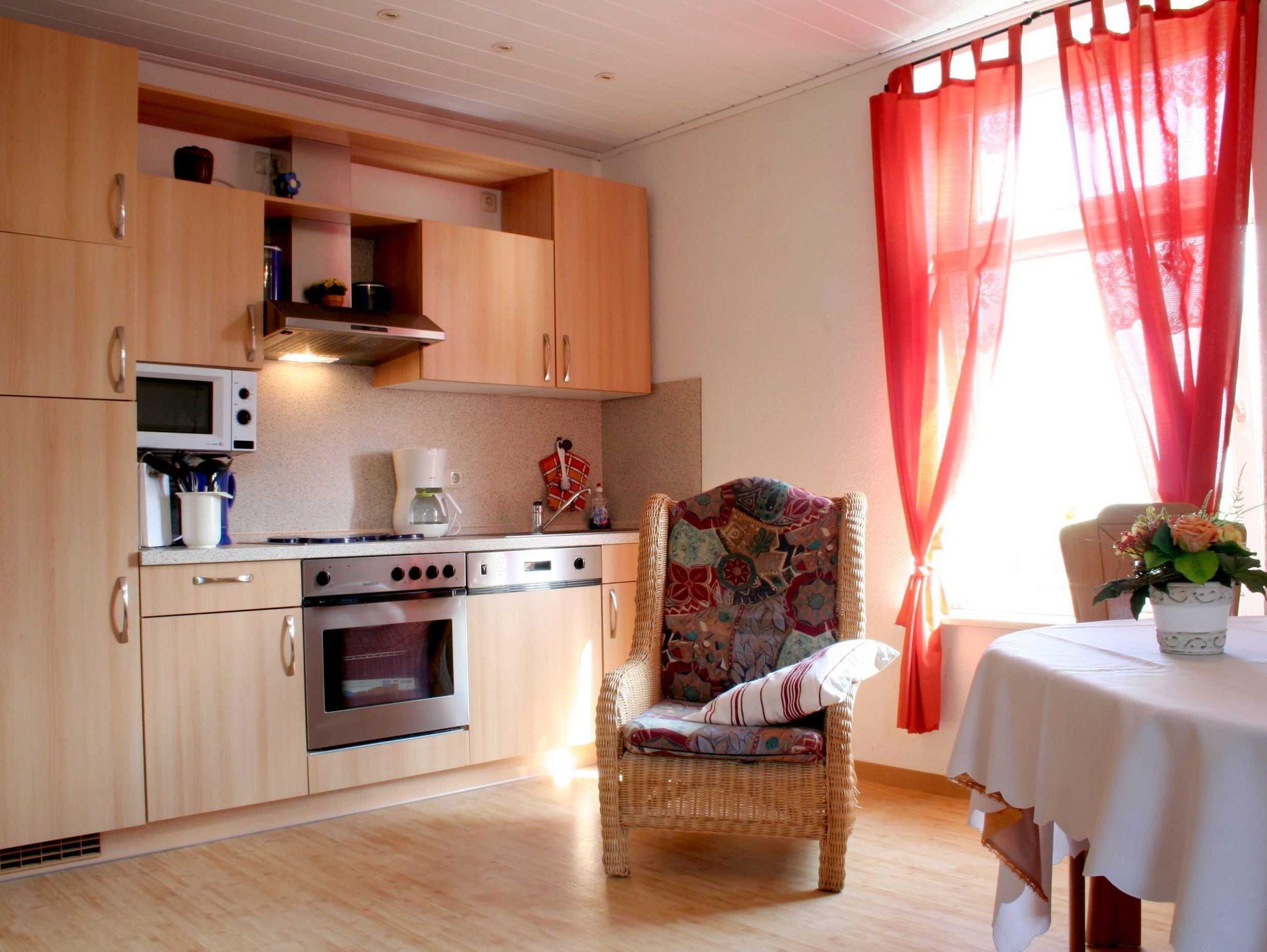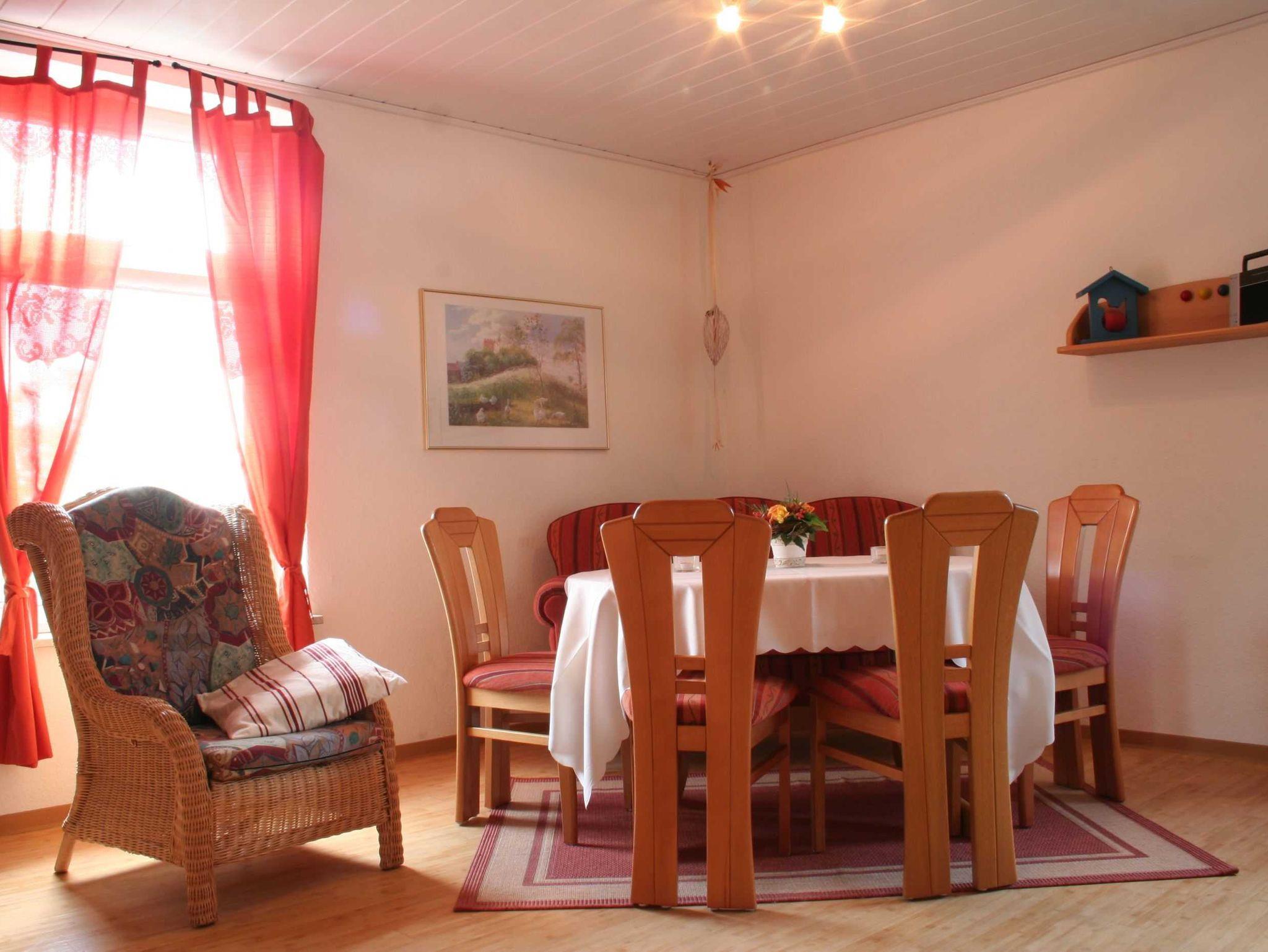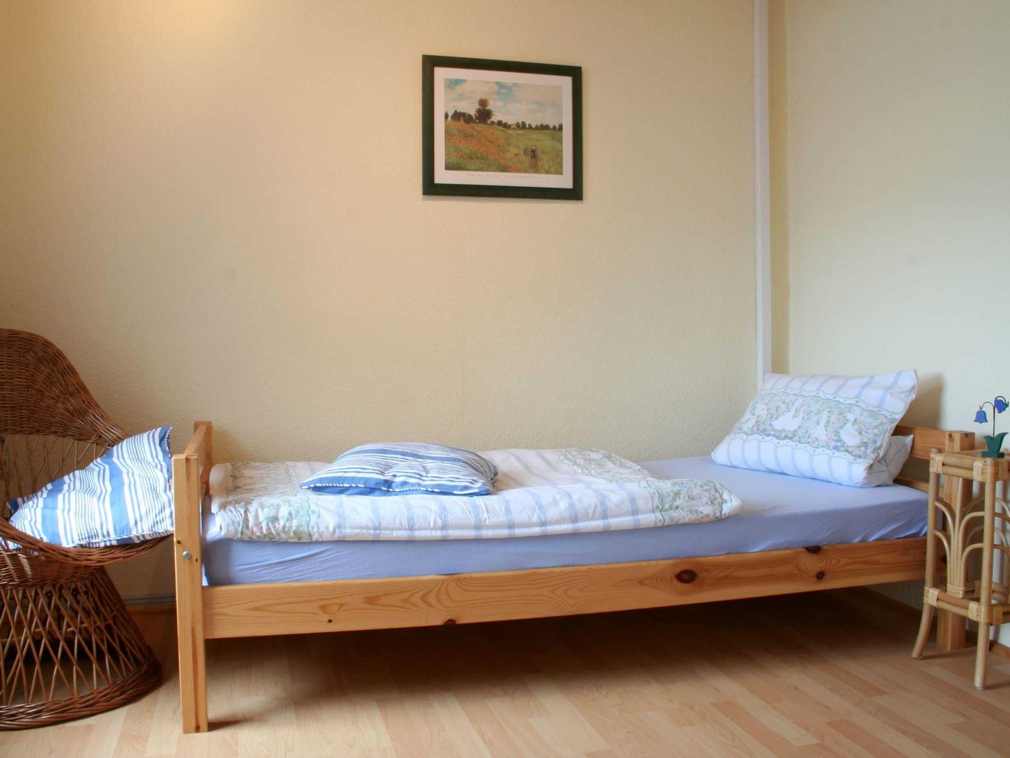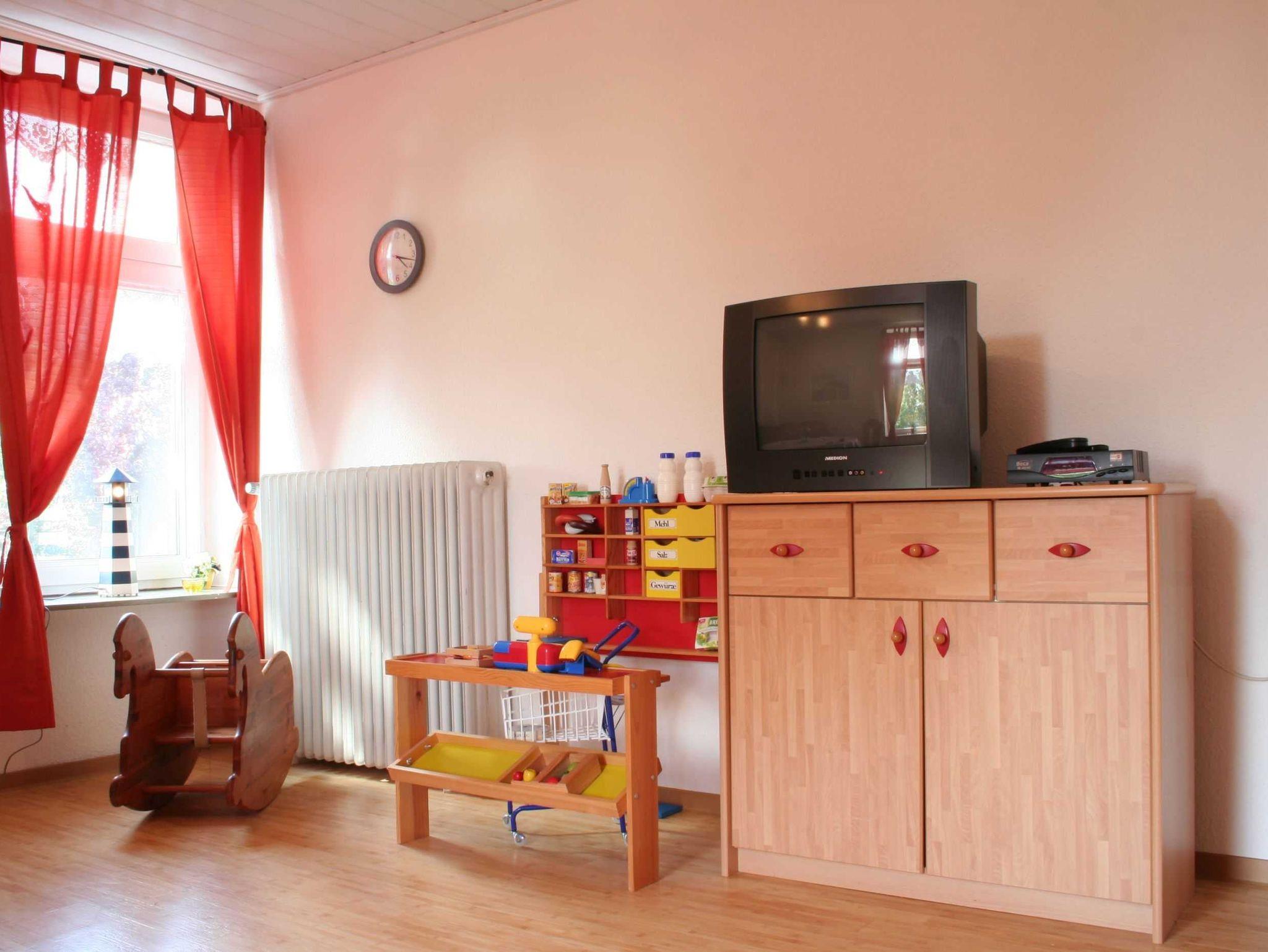 Im Obergeschoß des Hauses befindet sich die komplett eingerichtete, zentral geheizte Ferienwohnung West. Das Elternschlafzimmer ist mit Doppelbett, Kleiderschrank und Babybettchen ausgestattet. Ein Schlafraum mit Einzelbett liegt direkt neben dem Kinderzimmer mit Etagenbetten und Kleiderschrank. Im Wohnraum befindet sich eine gemütliche Essecke mit Sat-TV, Radio, Kinderhochstuhl und einer Kinderspielecke. Die moderne Küchenzeile ist ausgestattet mit Toaster, Geschirrspüler, Mikrowelle und Kaffeemaschine. Ein großes Duschbad mit WC und Fön komplettiert unsere Westwohnung. Bettwäsche und Handtücher bitte mitbringen.