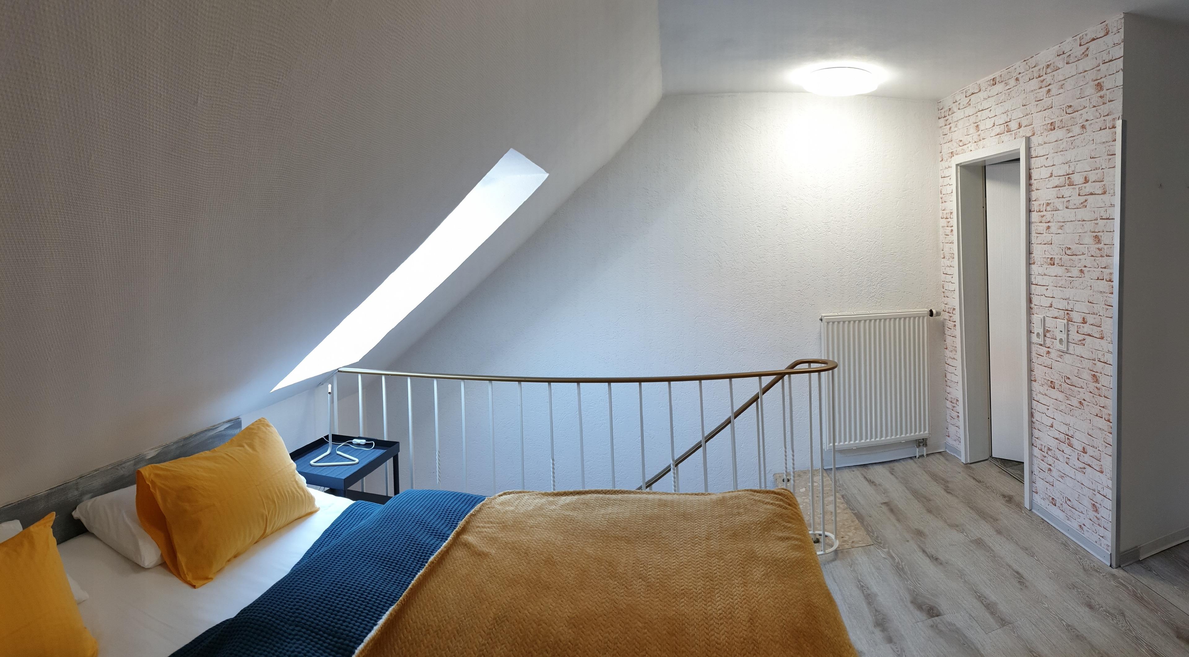 Über zwei Stufen von Außen erreichbar, innerhalb der Wohnung befindet sich der Wohn/Essbereich im Erdgeschoß, der Schlafbereich sowie das Bad in der ersten Etage. Smart-TV vorhanden ( Amazon prime video, Netflix & Co
