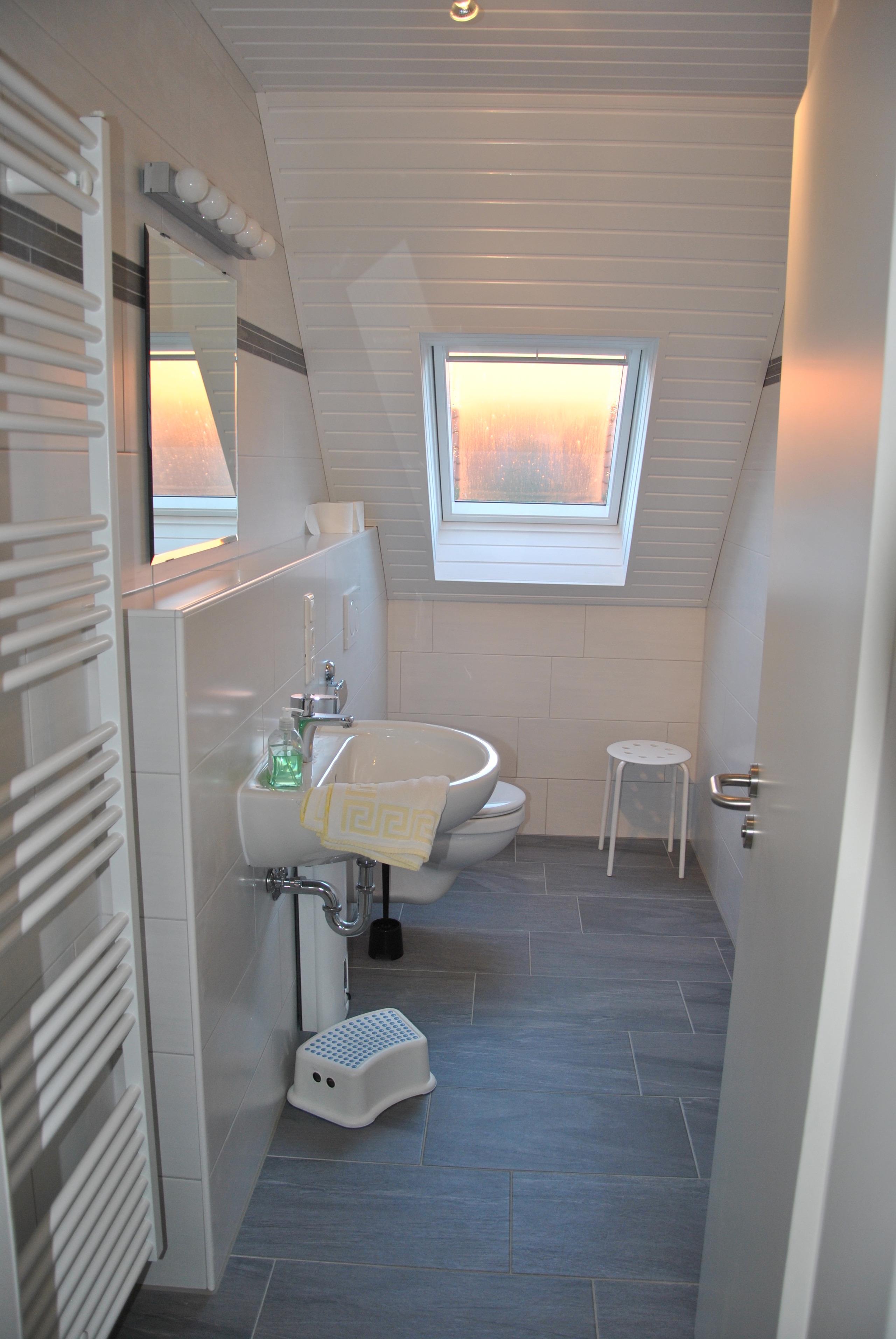 Im Obergeschoss stehen Ihnen ein zweites Bad mit Dusche und 2 Schlafräume ( 1 Schlafzimmer mit Doppelbett, 1 Schlafzimmer mit einem Einzelbett) zur Verfügung.