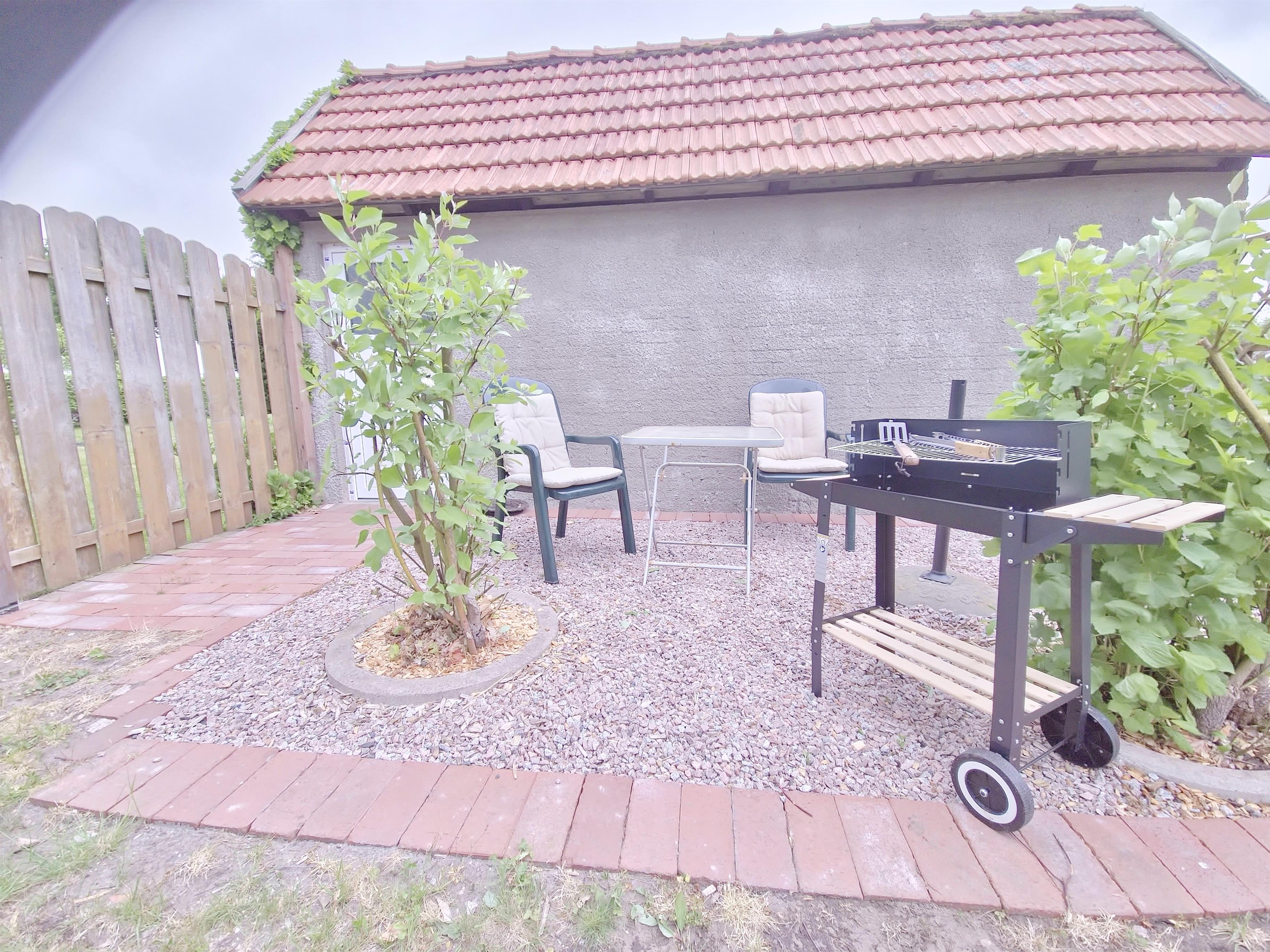 Nach der ausgiebigen Fahrradtour bietet die Terasse frische Luft und Entspannung direkt an der Ferienwohnung. Dann noch ne Kleinigkeit kochen? Los geht´s, die Küche ist gut ausgestattet, sogar mit einer Spülmaschine.
