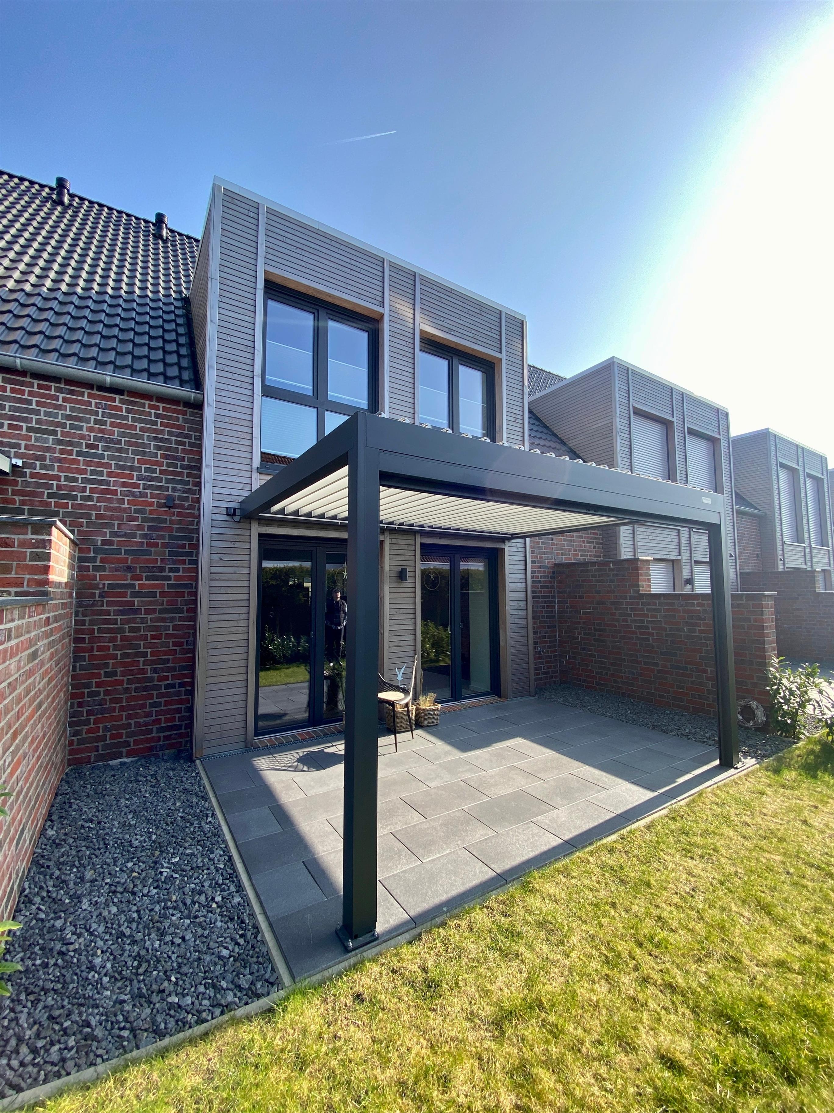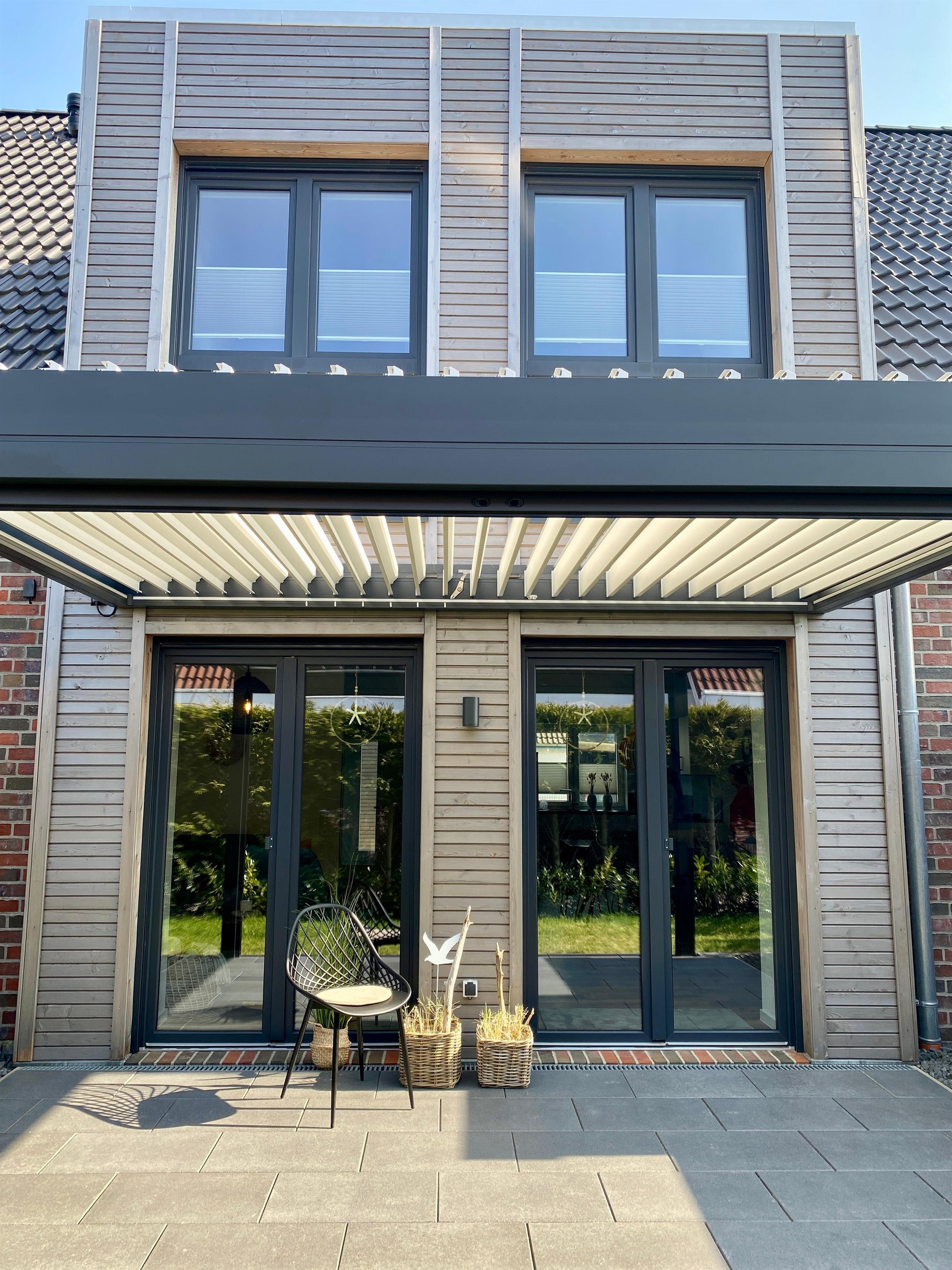 Die Terrasse mit Pergola präsentiert sich als zusätzlicher Rückzugsort - hier können Sie entspannte Momente unter freiem Himmel genießen und sich vom Charm der Umgebung verzaubern lassen.