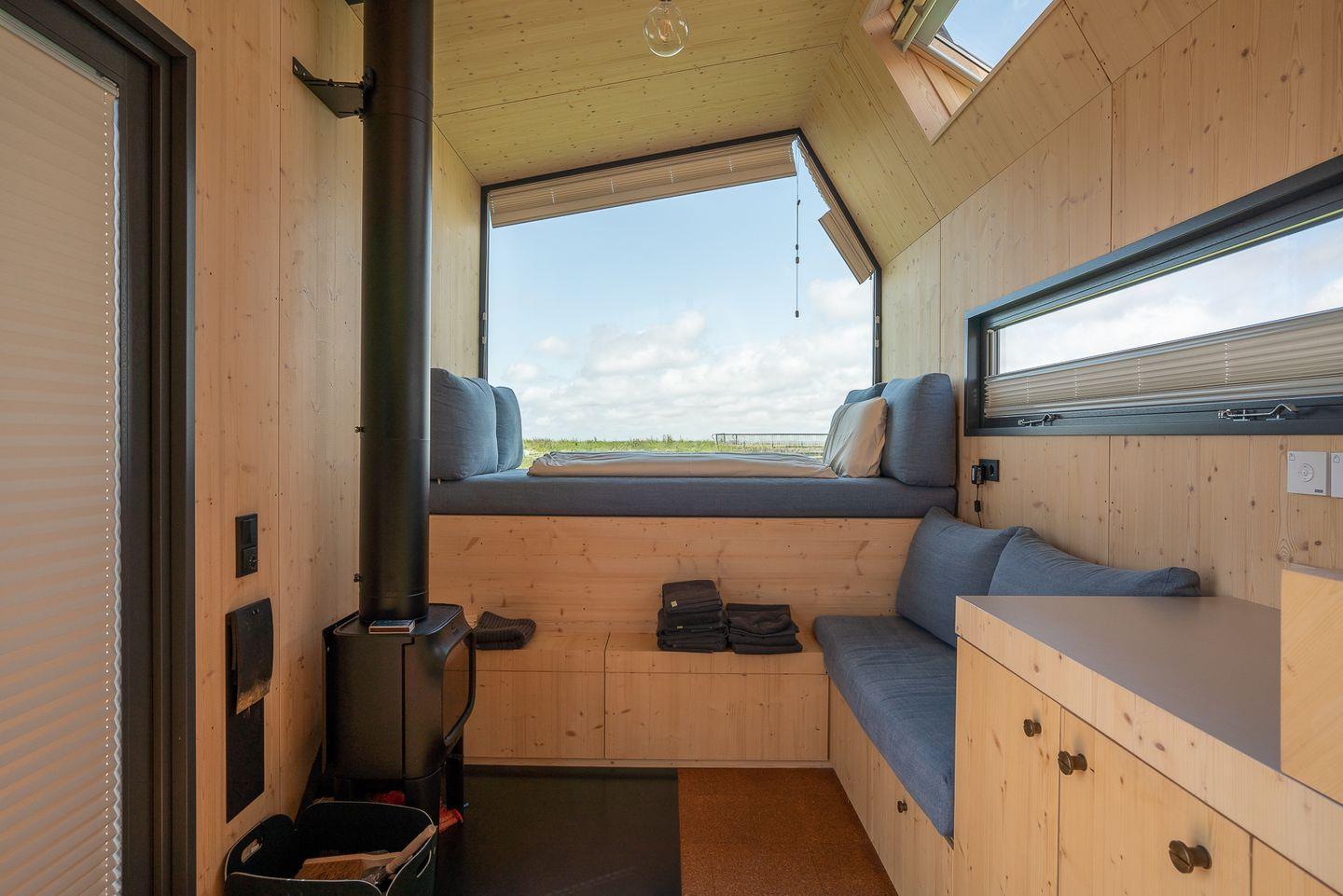 Übernachte in unserem Flagship-Modell für Designliebhaber - dem Green Tiny House Pioneer. Erlebe Nachhaltigkeit von morgen und ein Naturerlebnis der besonderen Art. Unser Vorzeigemodell wird in liebevoller Manufakturarbeit in Schleswig-Holstein hergestellt und bietet auf 22 Quadratmetern Platz für bis zu drei Erwachsene oder zwei Erwachsene und zwei Kinder. Wie jedes unserer kleinen Häuschen ist es als nachhaltige Ferienimmobilie zertifiziert und besteht komplett aus wohngesunden Materialien. Zu den Ausstattungshighlights gehören ein übergroßes Panoramafenster, ein skandinavischer Kaminofen und eine ressourcensparende Astronautendusche. Zusätzlich kompensieren wir alle anfallenden CO2-Emissionen und ermöglichen dir so eine klimaneutrale Übernachtung.