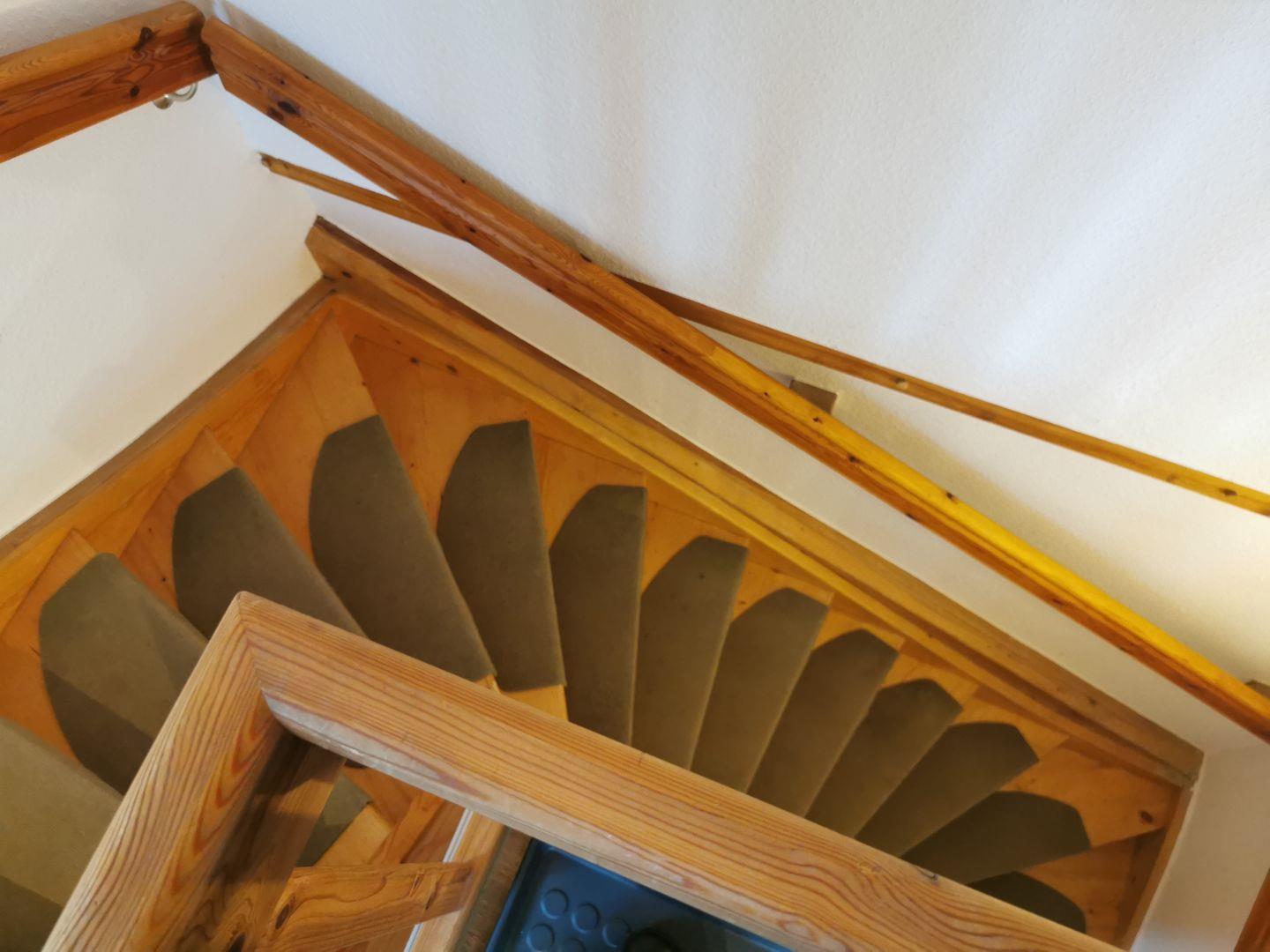 Natürliche Holzelemente und freiliegende Deckenbalken sorgen für ein behagliches, fast skandinavisch anmutendes Ambiente. Direkt neben dem Haus steht Ihnen ein eigener Parkplatz zur Verfügung – bequem und unkompliziert.