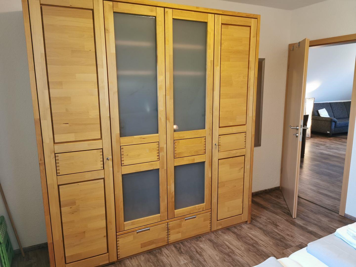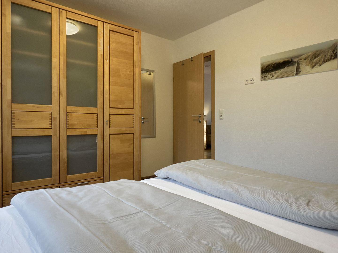 Das Schlafzimmer verfügt über ein großes Doppelbett und einen geräumigen Kleiderschrank.