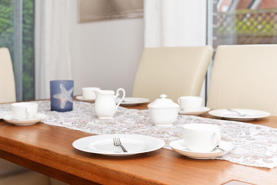 Die moderne, offene Küche, in der ebenfalls das edle Eichenholz-Stäbchenparkett verlegt ist, ist mit allem ausgestattet, was zum Frühstücken, Kochen oder Grillen benötigt wird - neben einem Herd mit vier Kochplatten, einem Ofen und einer Mikrowelle finden sich hier Kaffeemaschine, Toaster, Wasser- und Eierkocher. Und damit die wertvolle Urlaubszeit nicht mit dem Abwasch vergeudet wird, ist die Küche auch mit einer Spülmaschine ausgestattet.