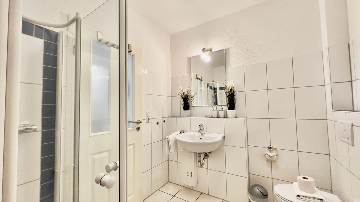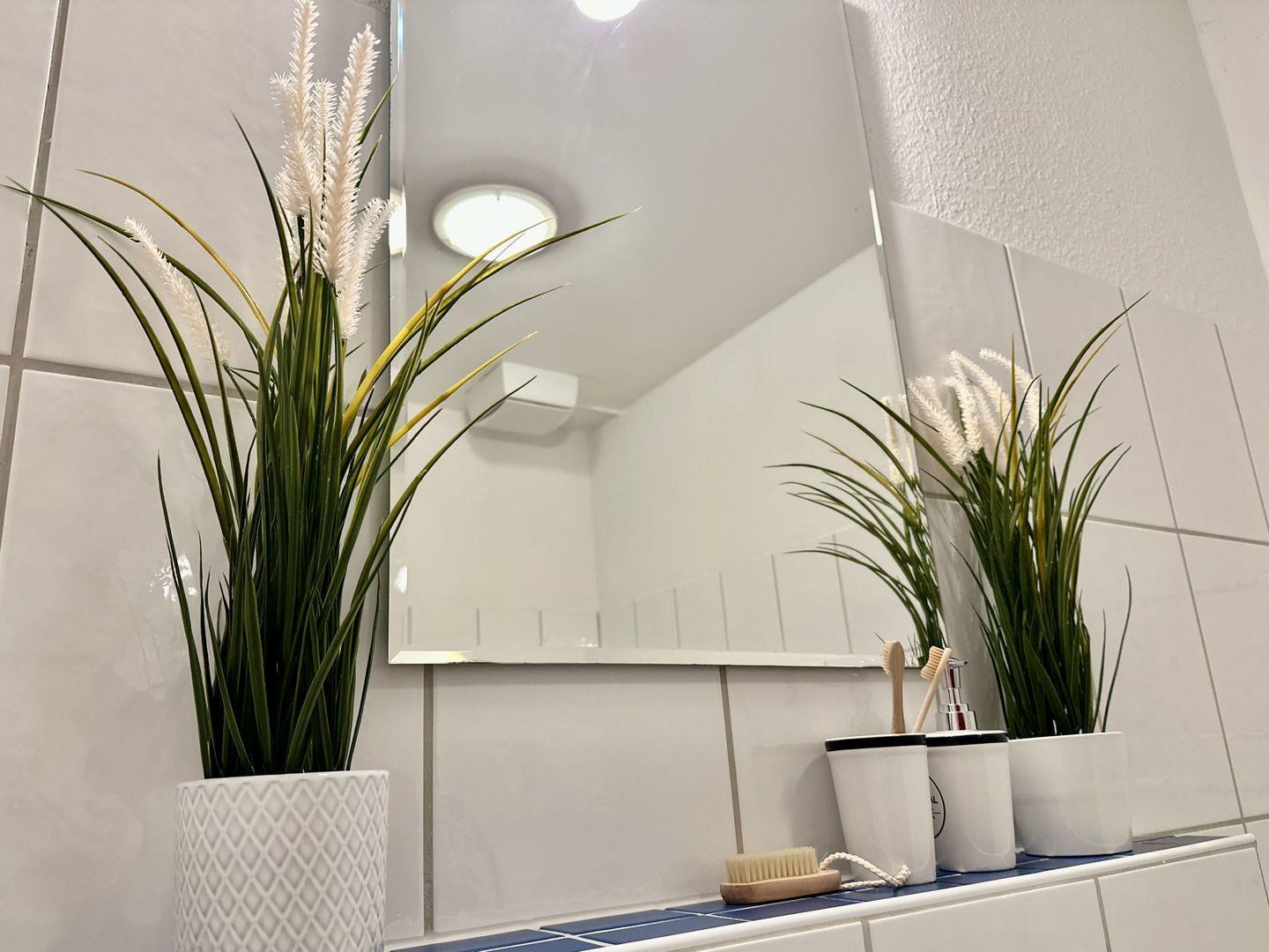 Nach einem langen Spaziergang am Strand bietet das Badezimmer vielfältige Möglichkeiten zur Entspannung. Genießen Sie eine belebende Dusche in der ebenerdigen Dusche oder ein wohltuendes Bad in der Badewanne. Das Badezimmer ist ein Ort, an dem Körper und Geist zur Ruhe kommen können.