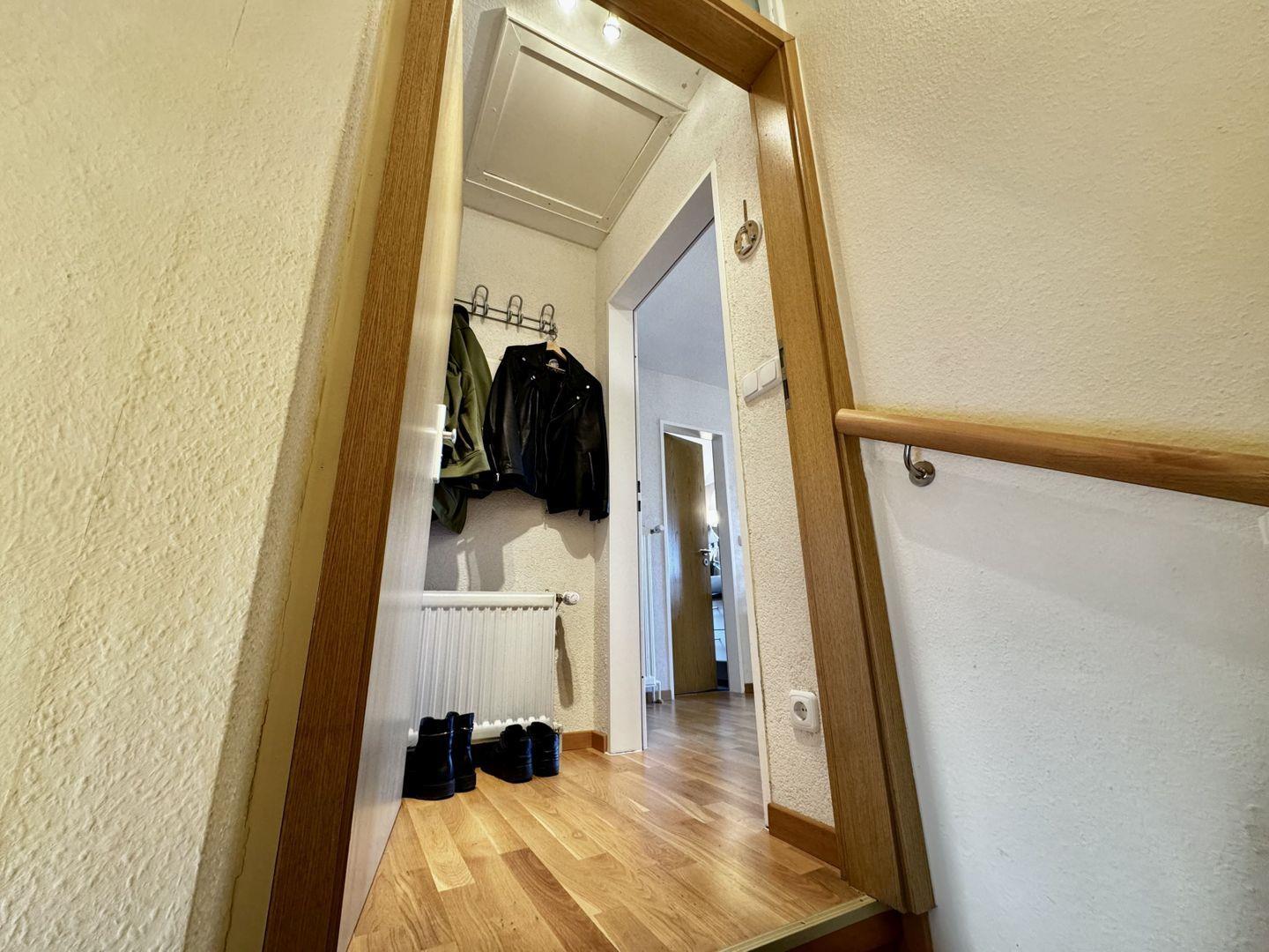 Das in Erdtönen gestaltete Tageslichtbad mit großem Dachfenster verspricht einen perfekten Start in den Tag. Mit einer Garderobe und einem Ganzkörperspiegel ist auch der Flur bestens ausgestattet.