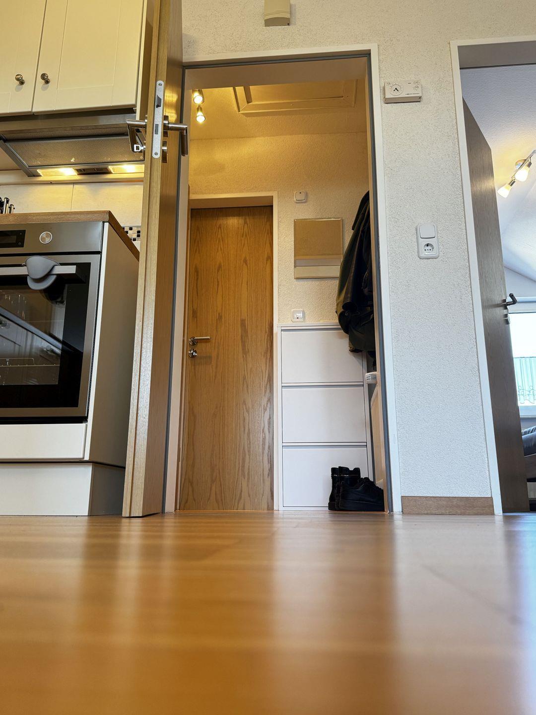 Das moderne, helle Wohnzimmer lädt mit hochwertigen Möbeln und schönem Parkettboden zum Verweilen ein. Die offene Wohnküche, ausgestattet mit allem, was das Kochherz begehrt, sorgt dafür, dass Sie auch beim Kochen mit Ihren Liebsten verbunden bleiben. Ob auf dem stabilen Schlafsofa zum Entspannen oder am großen Esstisch für einen Spieleabend – hier können Sie schöne gemeinsame Momente erleben.