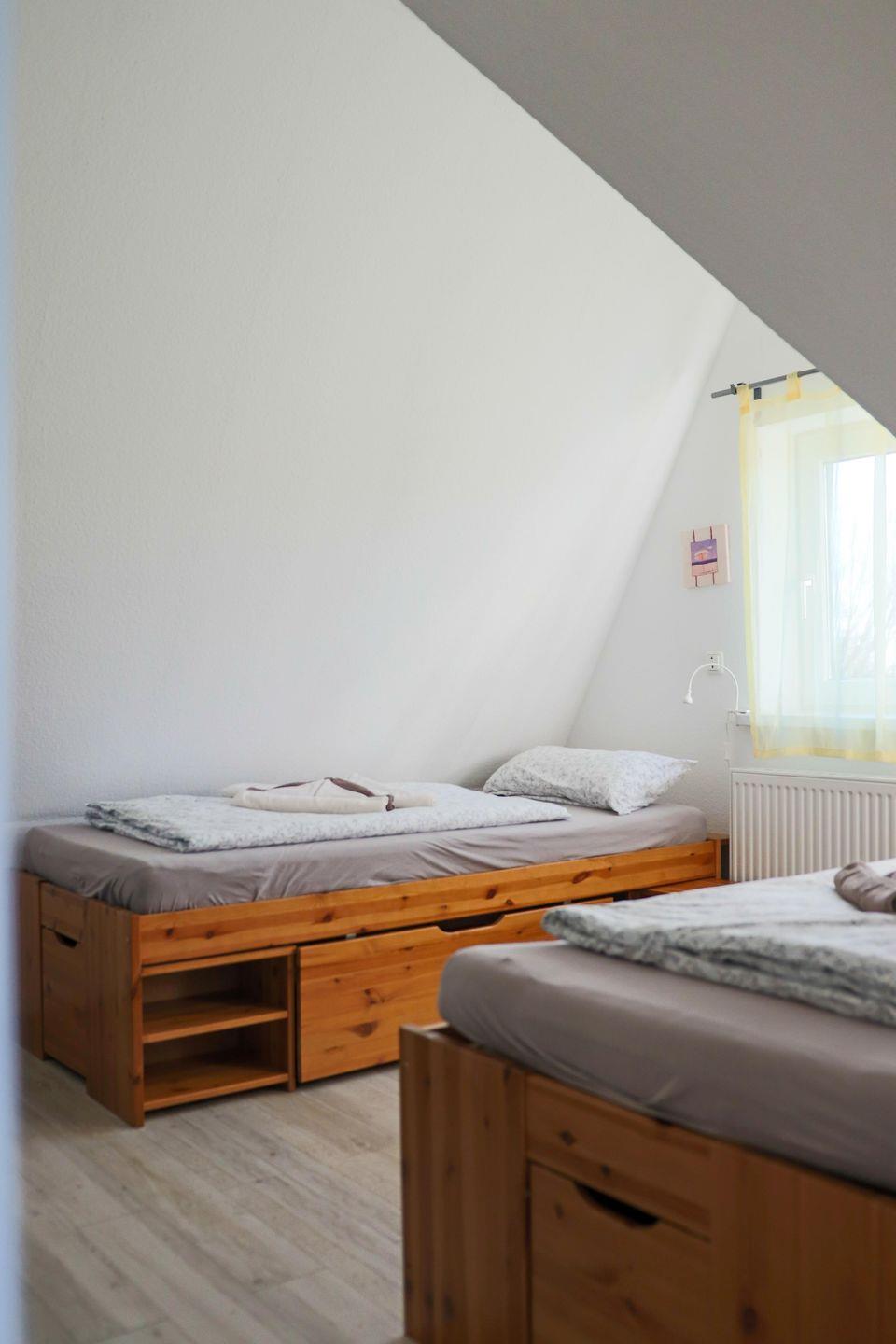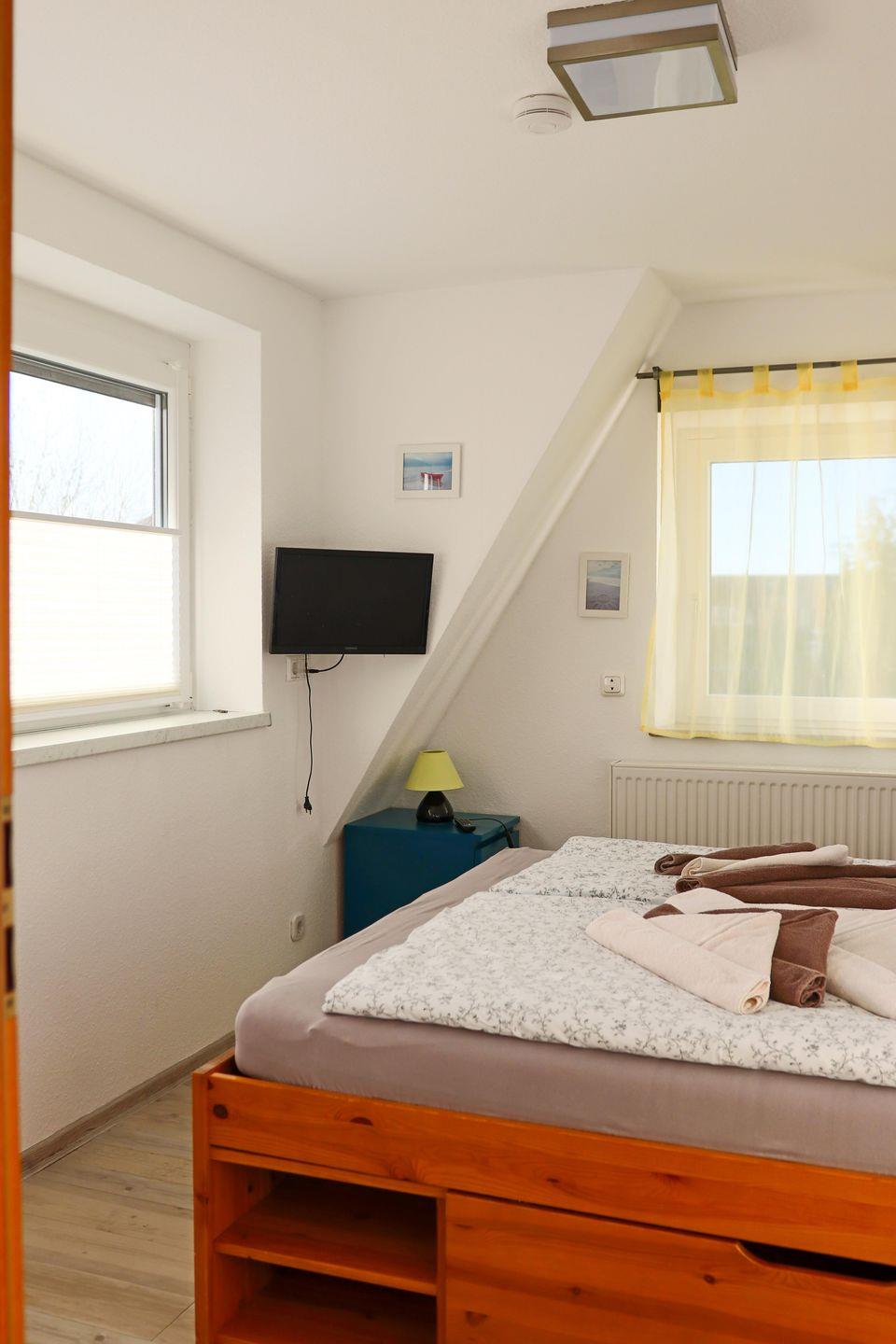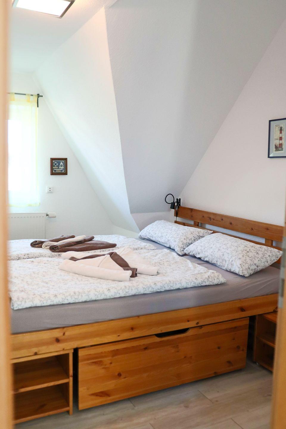 Das Haus bietet eine großzügige Stellfläche für mehrere PKWs, eine sonnige Terrasse und einen eingezäunten Garten. Im Inneren erwarten Sie ein geräumiges Wohnzimmer, eine voll ausgestattete Küche mit Essbereich, zwei Bäder, ein Gäste-WC und vier komfortable Schlafzimmer. WLAN, Telefon und LED-TV stehen kostenfrei zur Verfügung.