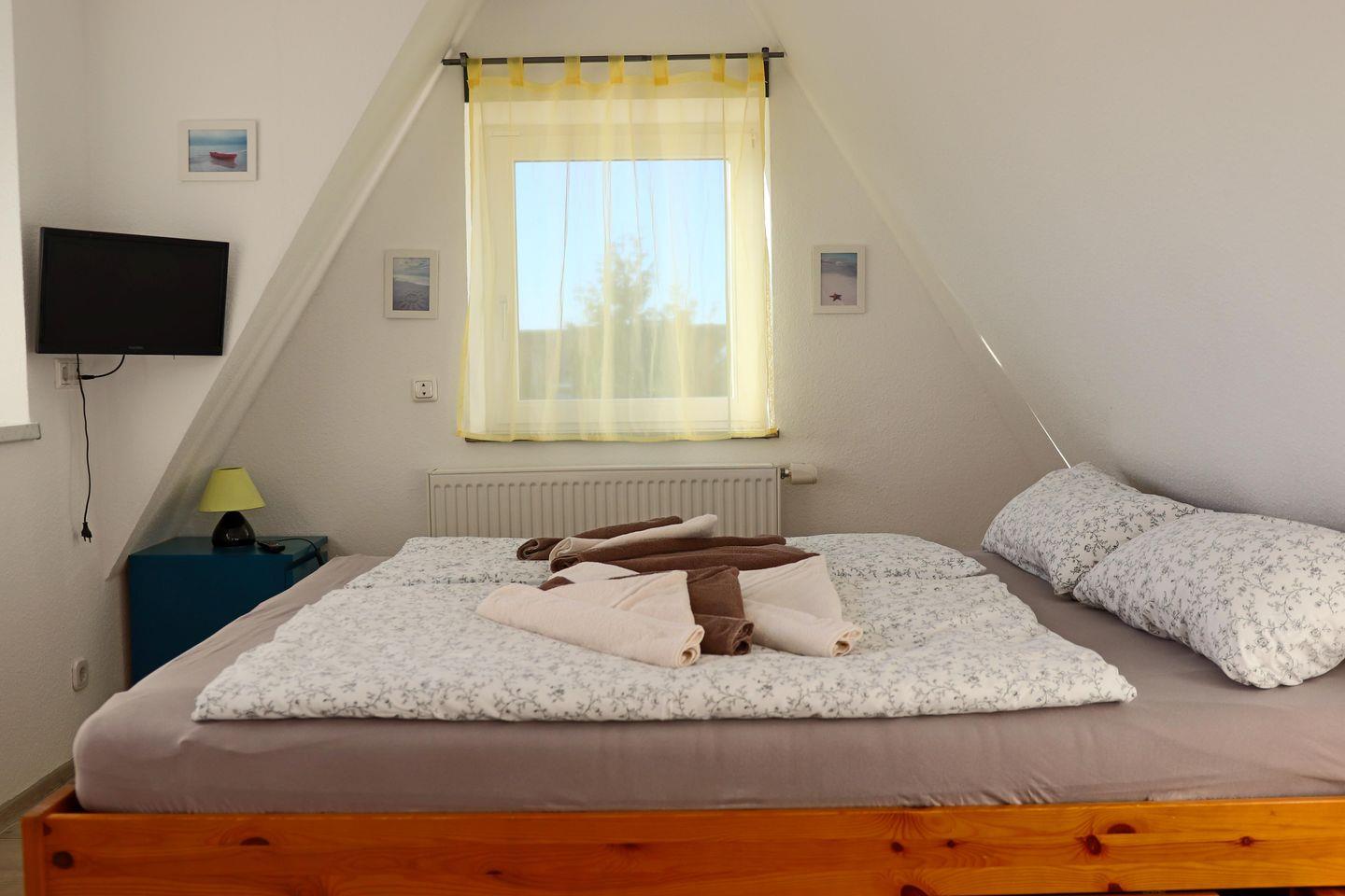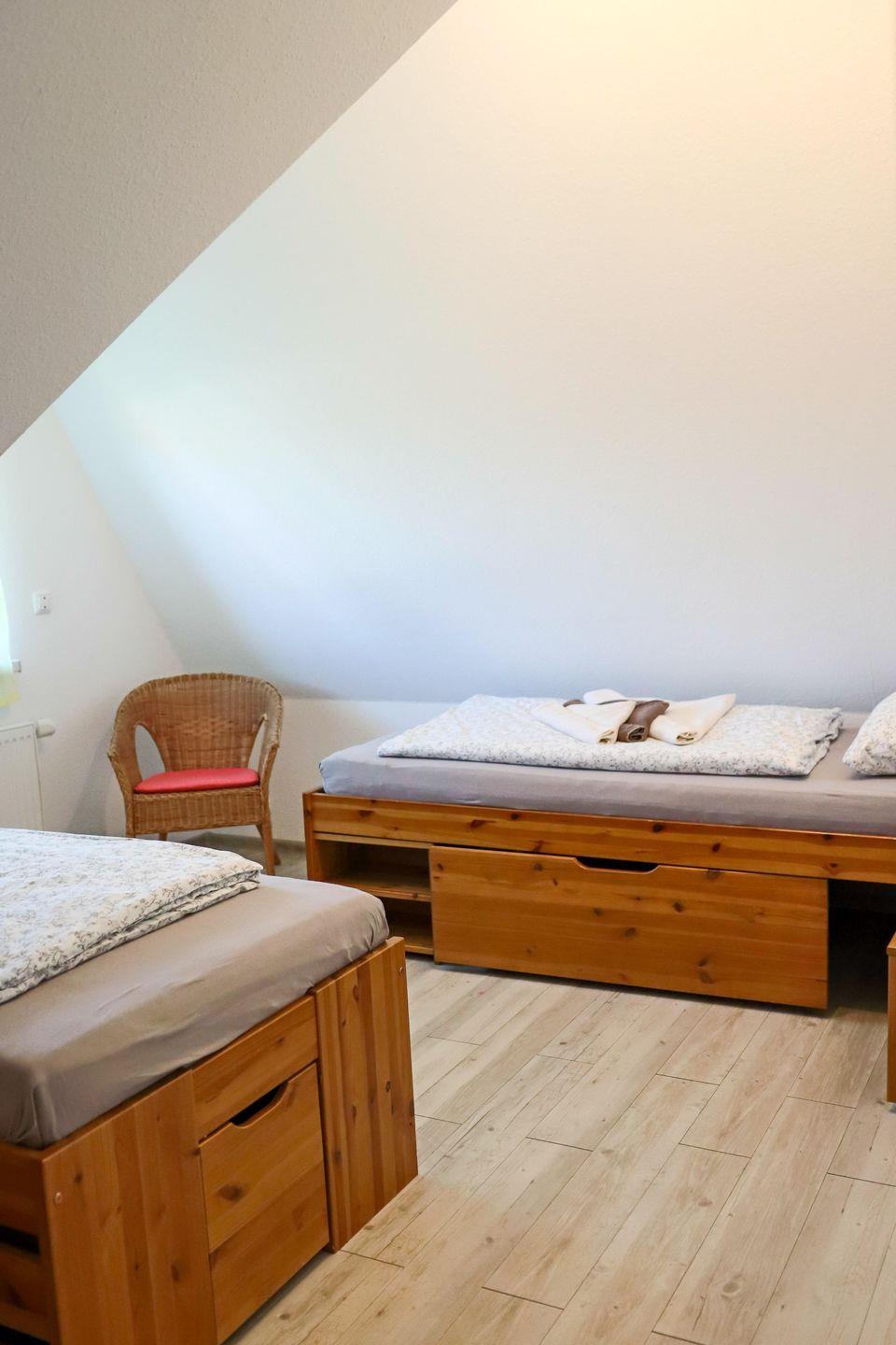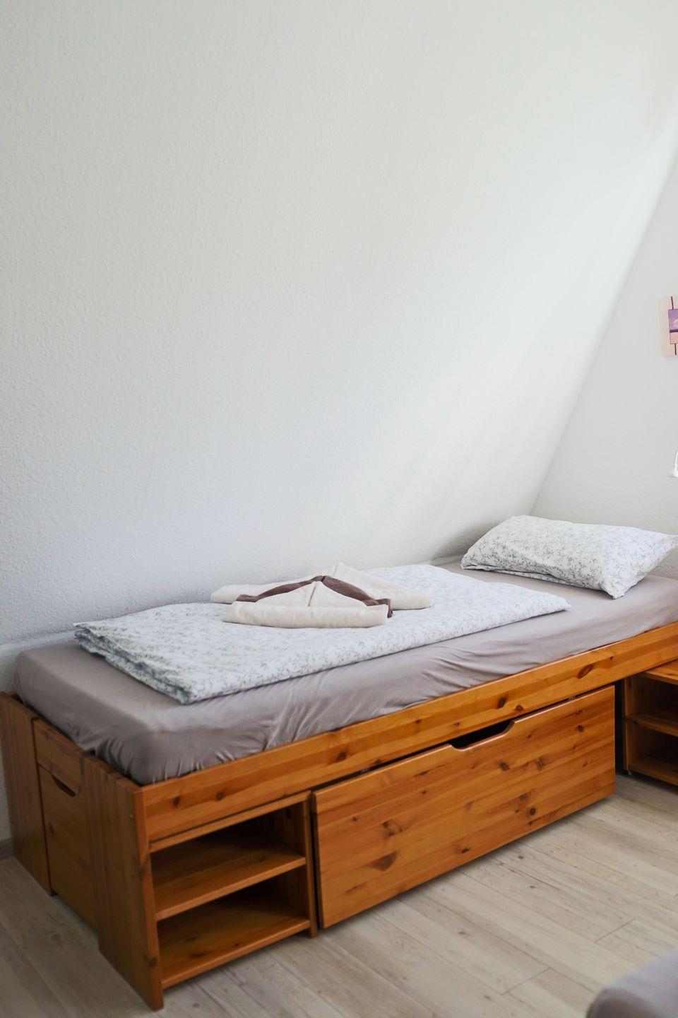 Das Haus bietet eine großzügige Stellfläche für mehrere PKWs, eine sonnige Terrasse und einen eingezäunten Garten. Im Inneren erwarten Sie ein geräumiges Wohnzimmer, eine voll ausgestattete Küche mit Essbereich, zwei Bäder, ein Gäste-WC und vier komfortable Schlafzimmer. WLAN, Telefon und LED-TV stehen kostenfrei zur Verfügung.