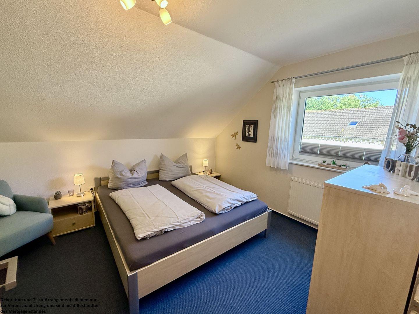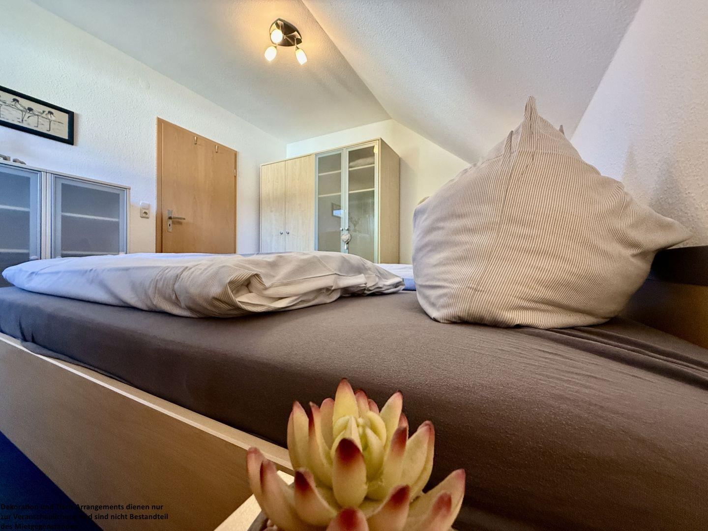 Über eine Holztreppe gelangen Sie ins Obergeschoss, wo sich zwei liebevoll gestaltete Schlafzimmer befinden.