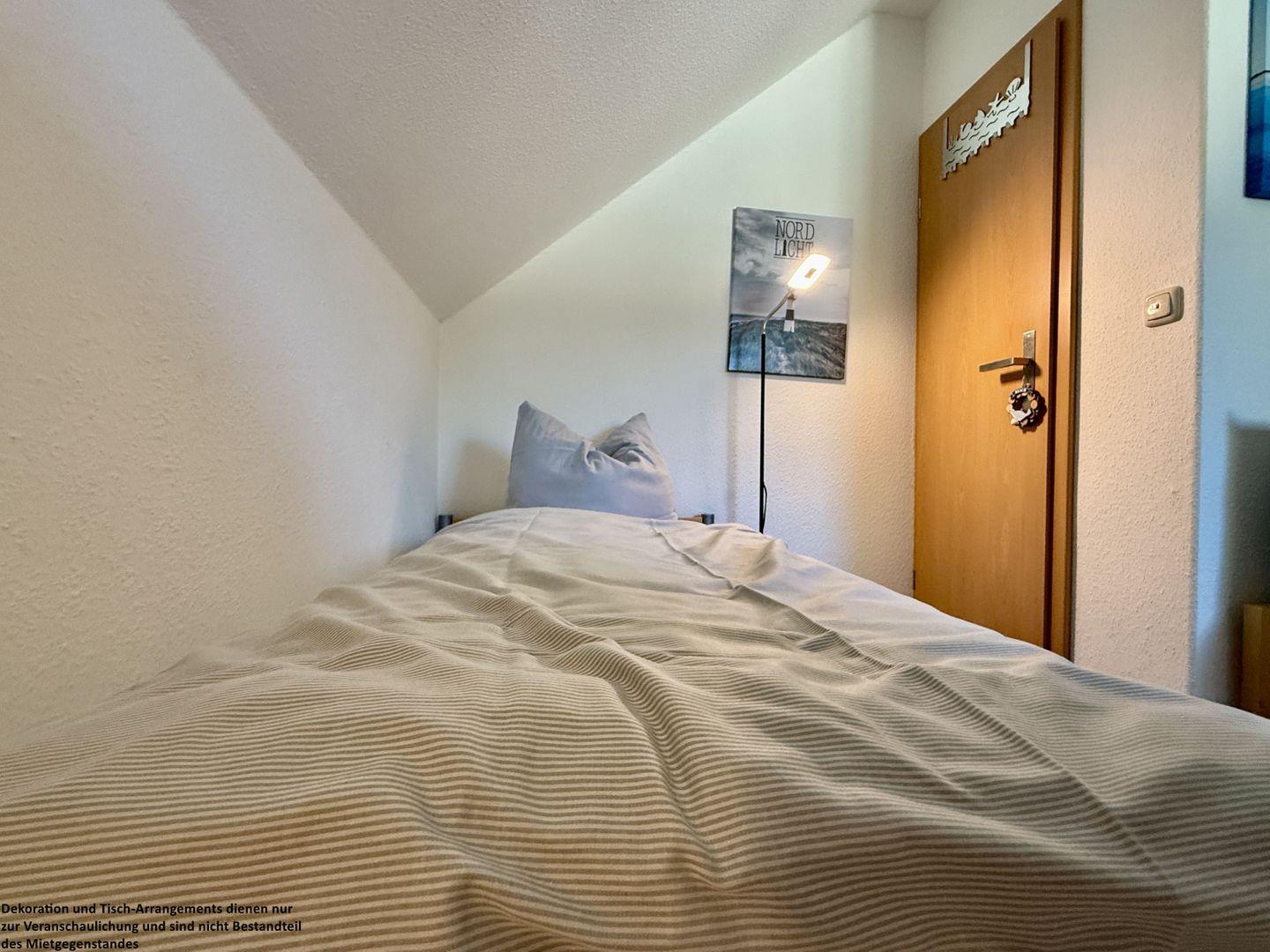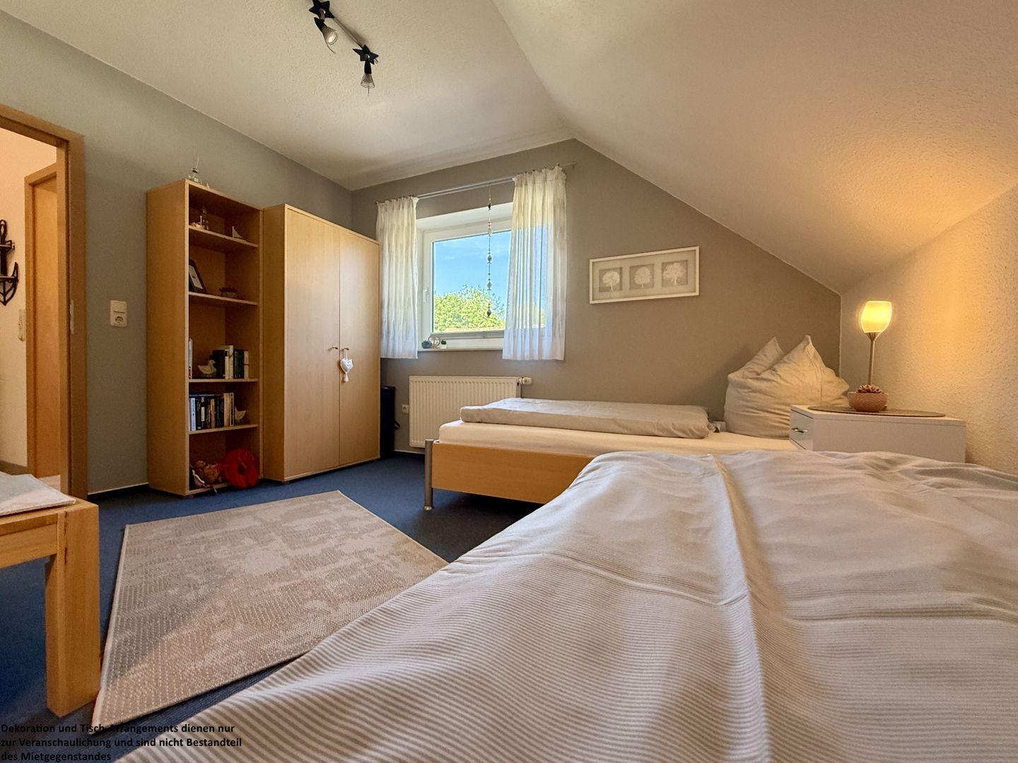 Das zweite Schlafzimmer verfügt über zwei Einzelbetten sowie einen geräumigen Kleiderschrank.