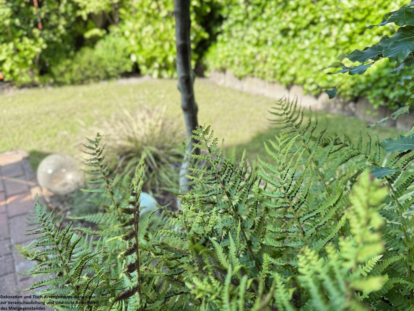 Genießen Sie entspannte Stunden im Garten, auf der sonnigen Terrasse mit Strandkorb oder in den hellen, modern eingerichteten Räumen.