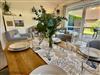 Vom Flur gelangen Sie in das helle und liebevoll gestaltete Wohnzimmer. Hier lädt ein gemütliches Sofa und zwei Sessel zu entspannten Stunden ein – sei es beim Fernsehen, beim Lesen eines guten Buches oder beim gemeinsamen Verweilen mit Ihren Liebsten. Die bodentiefen Fenster durchfluten den Raum mit Tageslicht und gewähren Ihnen einen wunderbaren Blick in den grünen Garten. Der angrenzende Essbereich mit Platz für vier Personen bietet den perfekten Rahmen für gemeinsame Mahlzeiten oder gesellige Spieleabende.