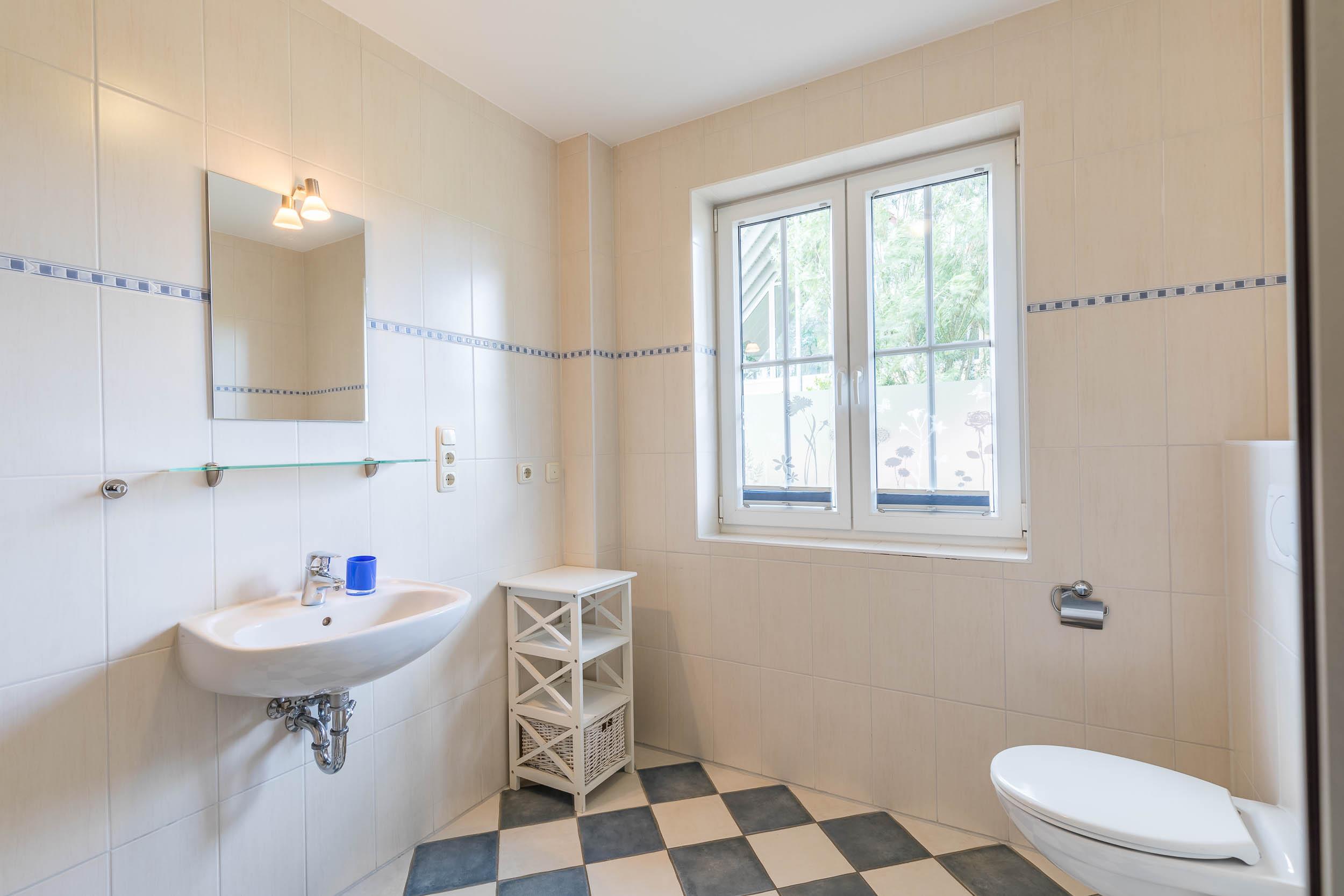 Ein modernes Bad mit Dusche, WC und Tageslicht komplettiert die mit Fußbodenheizung ausgestattete Wohnung, die alle Voraussetzungen für einen Wohlfühl-Urlaub in sich vereint.