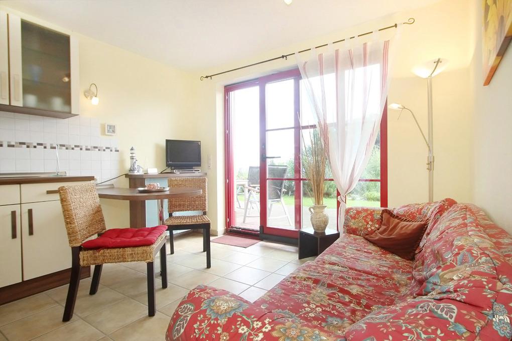 Das Haus bietet zusätzlich eine 2-Zimmer-Einliegerwohnung mit eigenem Eingang für 2 Personen. Buchen Sie diese gern zum Haus dazu (60,00€/ Üb. plus einmalig Roomservice), so dass zusammen mit dem Haus bis zu 8 Personen genug Platz finden. Das Wohnzimmer bietet eine gemütliche Sitzecke und SAT-TV, im Schlafzimmer befindet sich ein Doppelbett. Weiterhin ist die Wohnung mit einem Bad (Du/WC) sowie einer Küchenzeile mit kleiner Essecke ausgestattet. Diese Einlieger-Wohnung ist nur in Verbindung mit dem Haus buchbar.