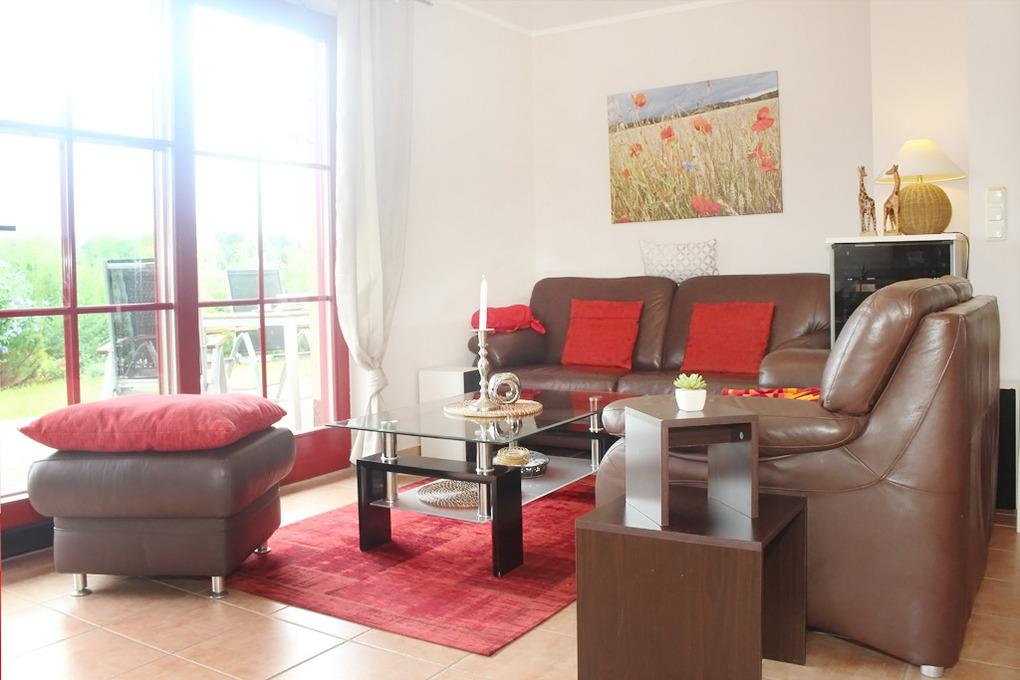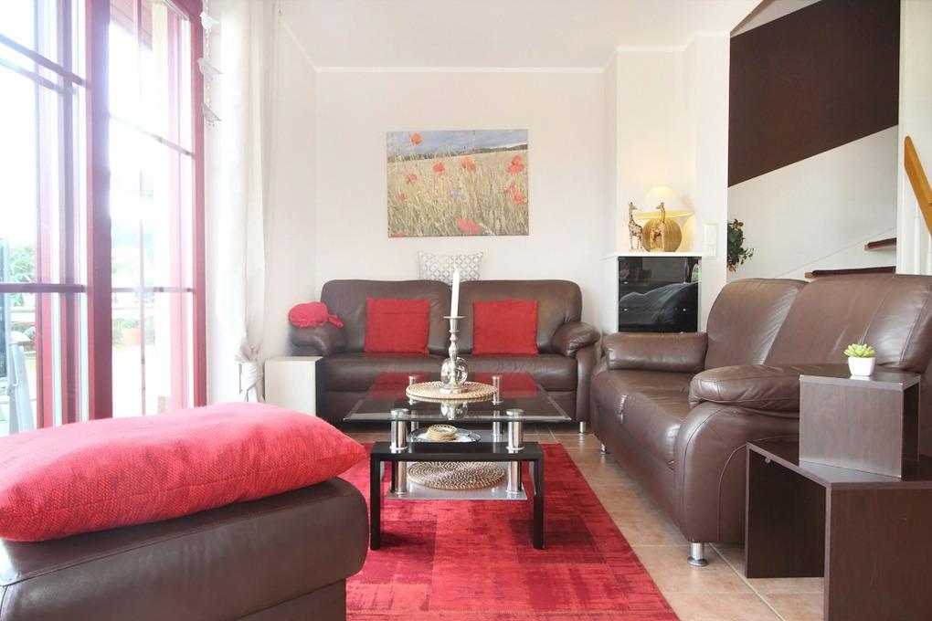 Im Erdgeschoss des 110qm großen Hauses können Sie sich im Wohnzimmer mit Flachbildfernseher, Stereoanlage und DVD-Player entspannen.