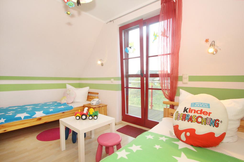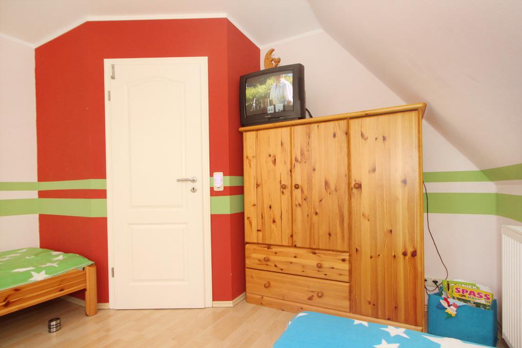In der zweiten Wohnebene befinden sich die 3 Schlafzimmer: Für Kinder stehen im Kinderzimmer 2 Einzelbetten zur Verfügung. Im 2. und 3. Schlafzimmer steht jeweils ein Doppelbett. Im 3. Schlafzimmer ist zusätzlich ein Fernseher und ein Kinderreisebett.