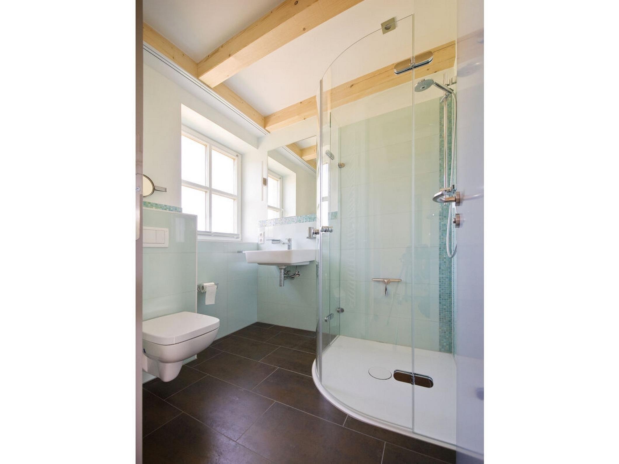Darüber hinaus befinden sich auf dieser Ebene das zweite Schlafzimmer mit Doppelbett und Kleiderschrank sowie ein zweites Badezimmer, ebenfalls mit Dusche und WC.