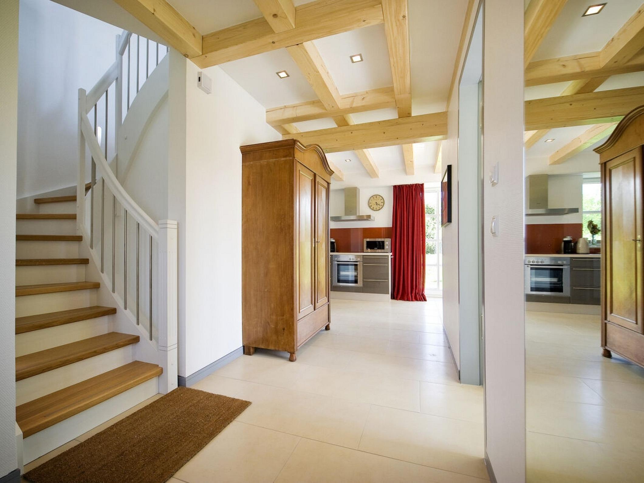 Während der Boden im Erdgeschoss mit Steinfliesen ausgelegt ist, sind im Obergeschoss massive Holzfußböden anzutreffen – was für ein gemütlicher Anblick!