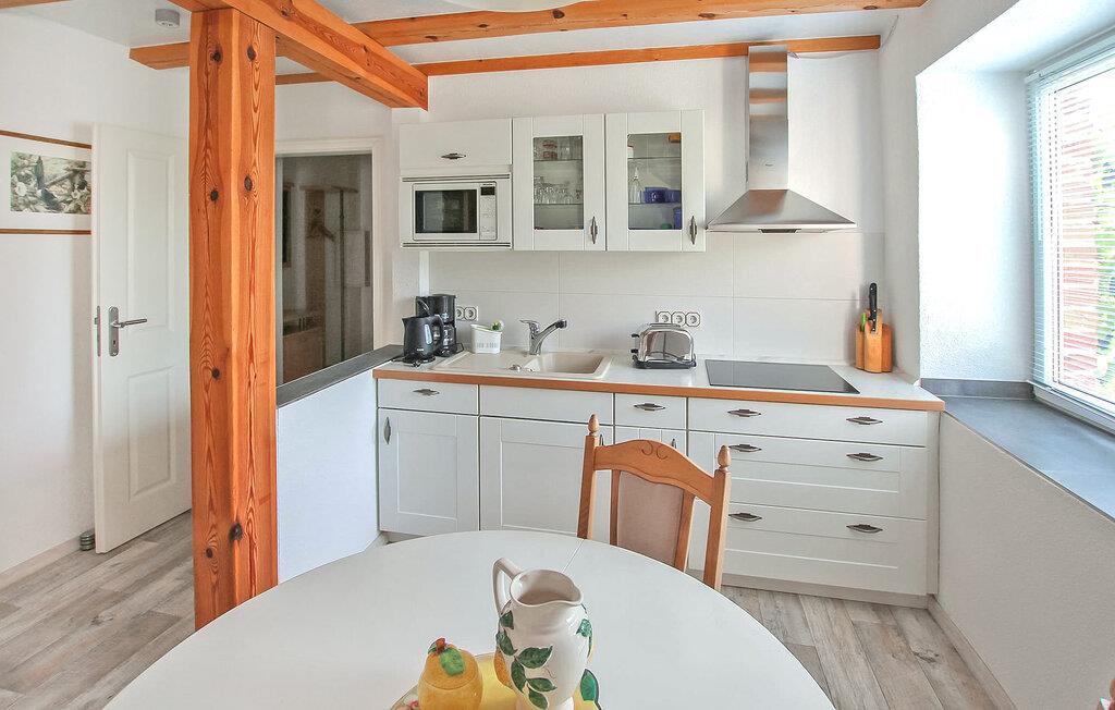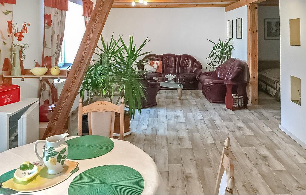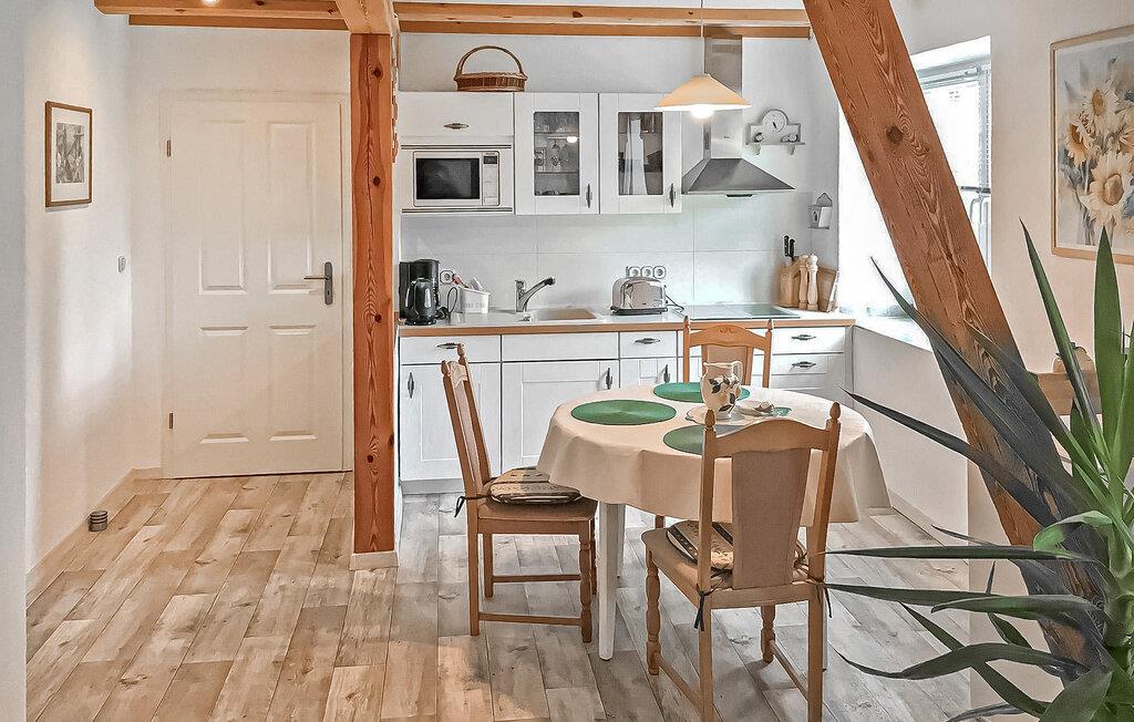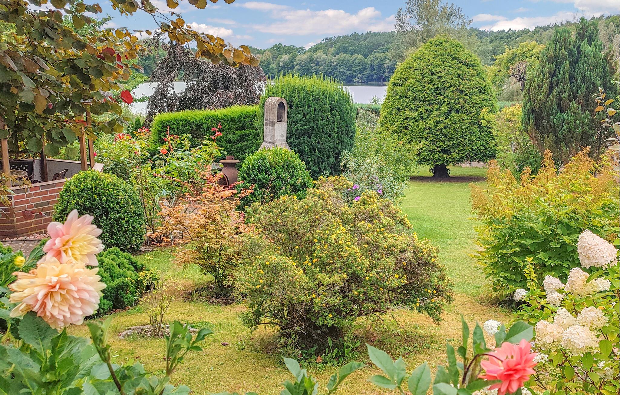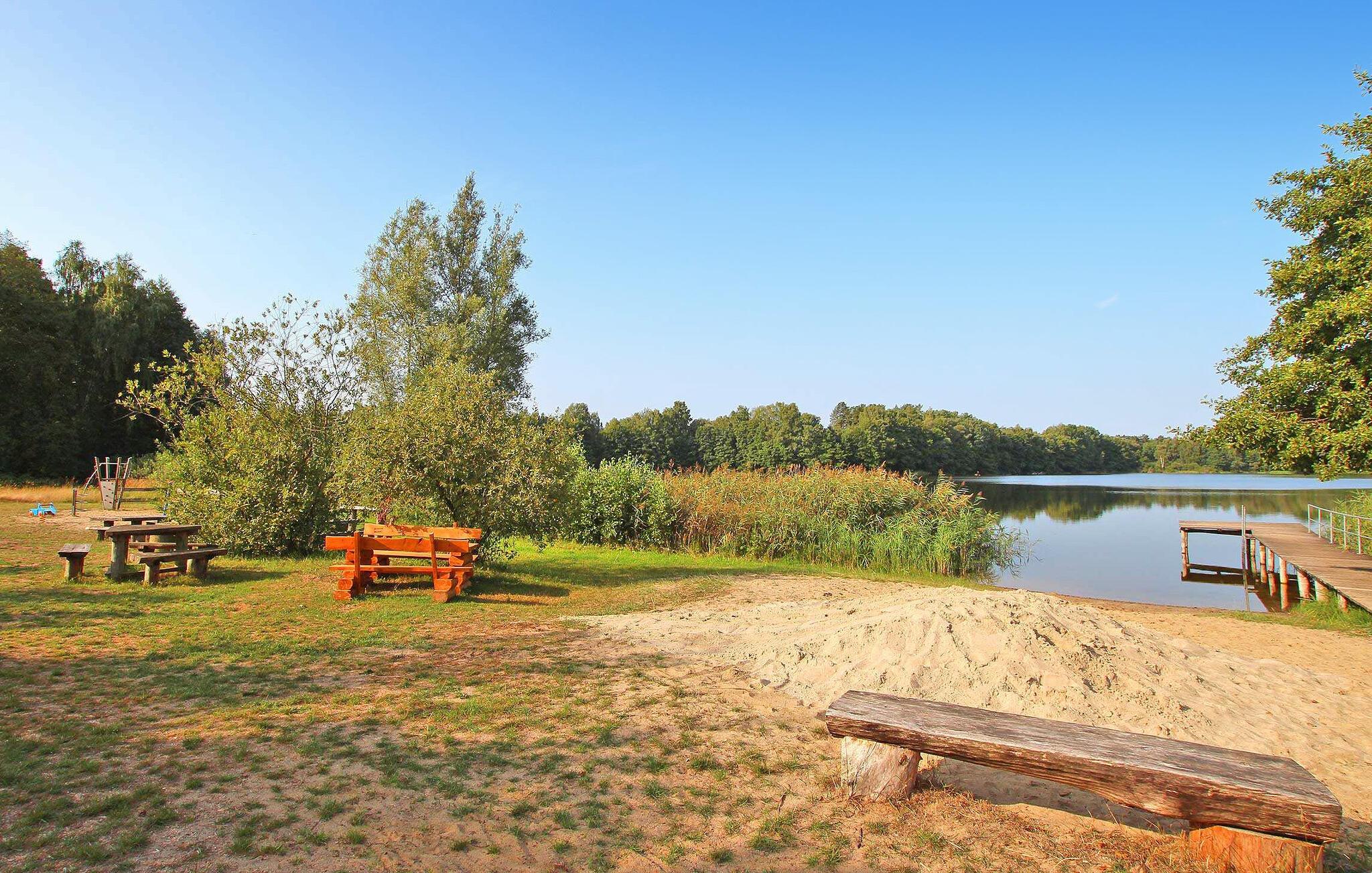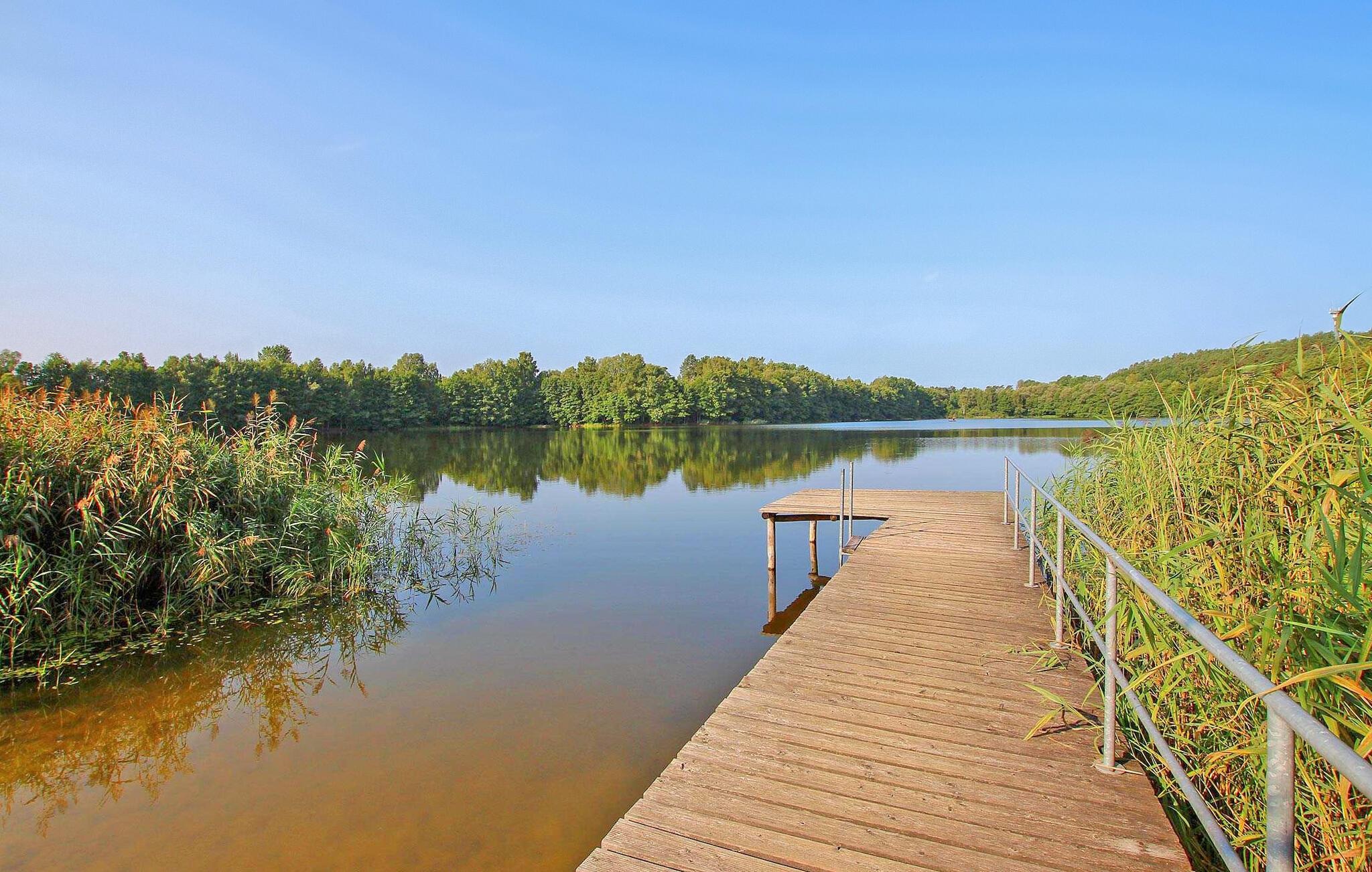 Direkte ved Pfarrsee, en skøn bade- og fiskesø, ligger to ferielejligheder i en tidligere lade på ca. 6.000 kvadratmeter meget velholdt bolig-/haveejendomme. Der er direkte adgang til stranden gennem en lille port. Til begge lejligheder er der en møbleret pavillon, grill, cykelkælder og en parkeringsplads pr. lejlighed. Betales på stedet: el- og varmeudgifter efter forbrug, sengelinned og håndklæder kan medbringes eller lejes. Cykler kan lejes mod betaling. Lejligheden er centralt opvarmet og har desuden el-radiator (om nødvendigt evt.) og insektbeskyttelse foran vinduerne. Byen Wokuhl ligger direkte på kanten af ??den østlige del af Müritz Nationalpark med Serrahner bøgeskoven (UNESCOs verdensarvssted). Den centralt beliggende by Wokuhl mellem boligbyen Neustrelitz (ca. 9 km), vandbyen Fürstenberg/Havel (ca. 14 km) og Lychen (ca. 15 km) byder på talrige udflugtsmuligheder. Regionen er rig på skove og søer og byder derfor på de bedste betingelser for aktive feriegæster og lystfiskere. Neustrelitz er kendt for sin historiske markedsplads, bymidte, pakhus og havneområde, slotshave, slotskirke, slotsfold, orangeri, slavisk landsby, zoologisk have, teater, dansekompagni og museum.