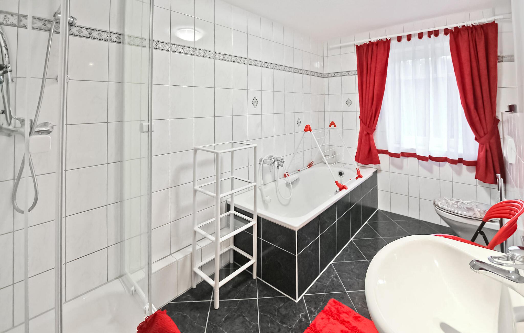 Badeværelse (nr. 1) - WC. Varmt og koldt vand. Bruser og badekar