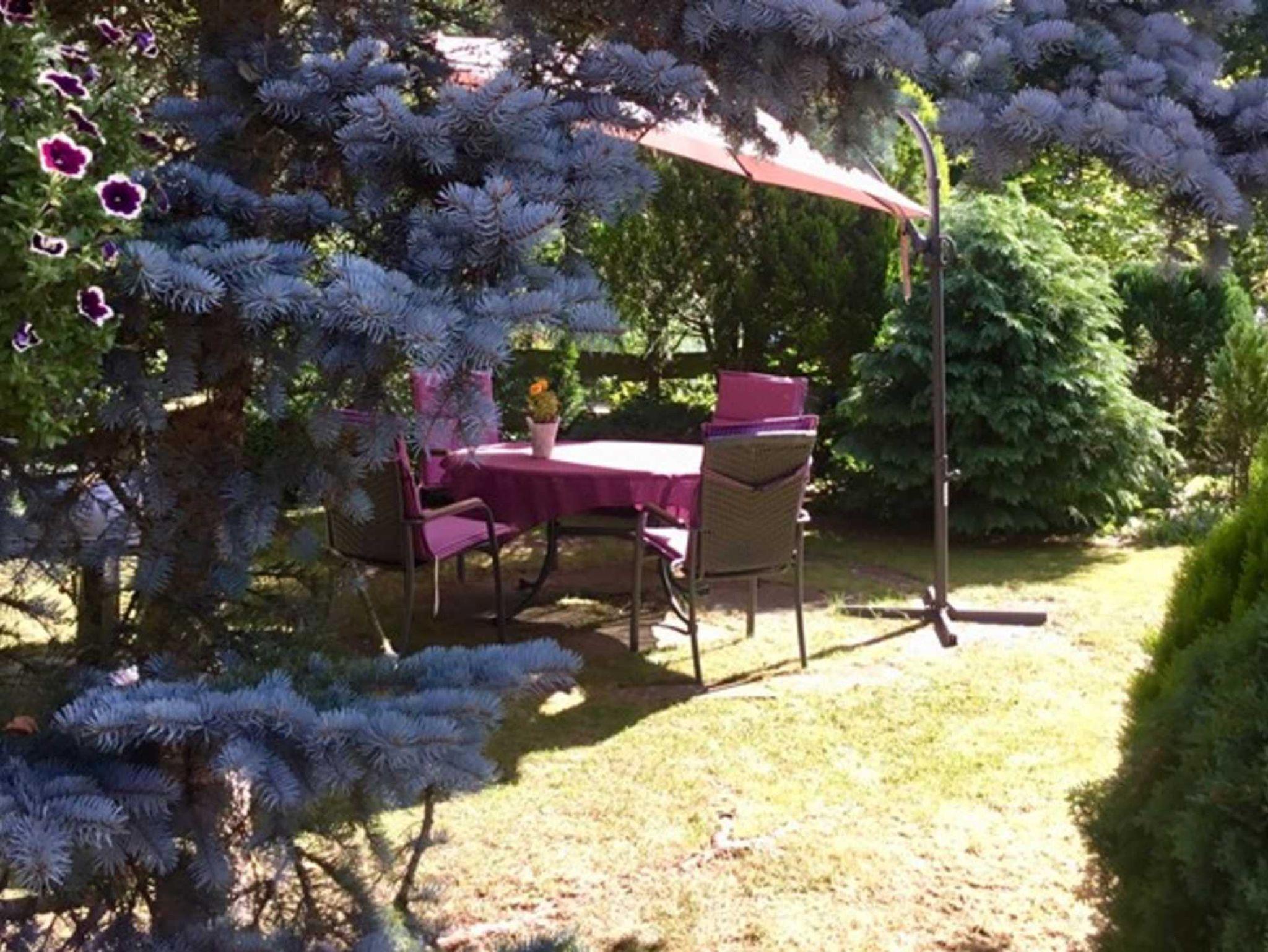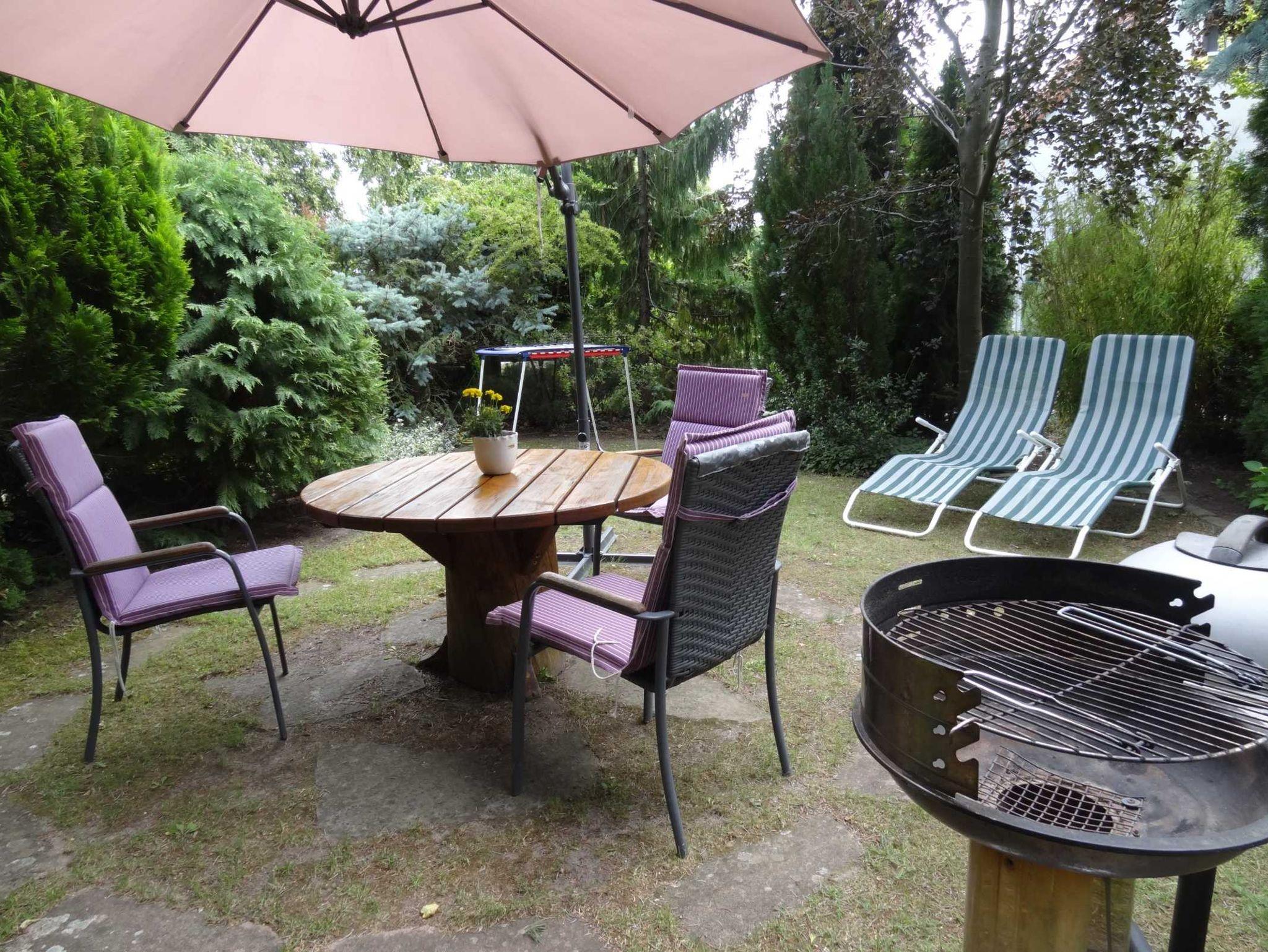 Im Außenbereich (ca. 100 qm) stehen Ihnen zur Verfügung: Carport, Sitzecke mit Tisch und Stühlen, Sonnenschirm, privater Angel- und Badesteg mit Angelkahnverleih - etwa 75 m von der Ferienwohnung entfernt.