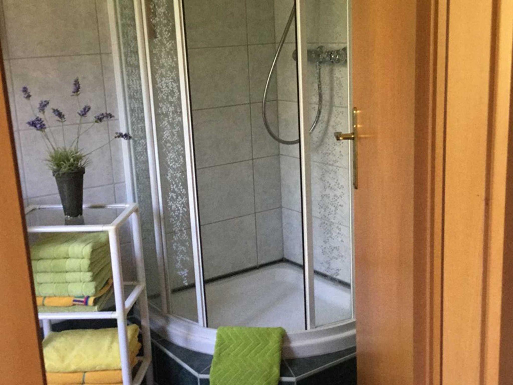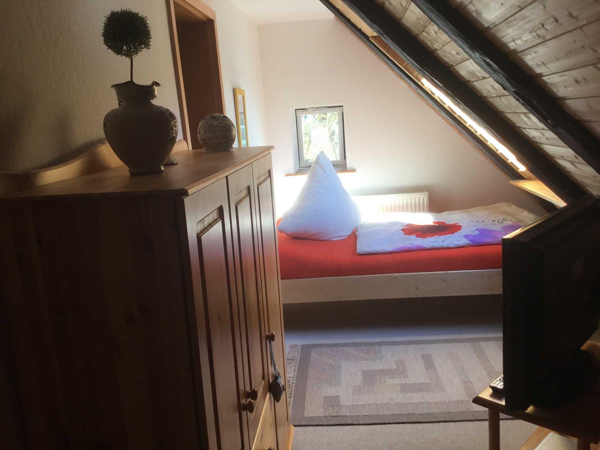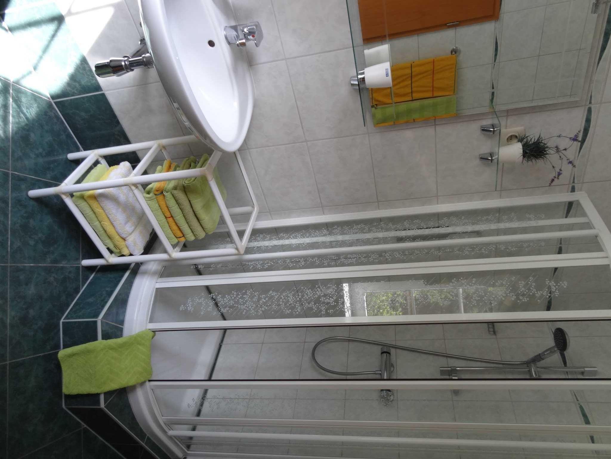 Die Ferienwohnung ist 70 qm groß und erstreckt sich über 2 Ebenen. Sie hat einen geräumigen Eingangsbereich mit anliegendem Schlafzimmer (Doppelbett) und Bad. Über die Wendeltreppe geht es ins Wohnzimmer mit offener Komplettküche (E-Herd mit Backofen, Geschirrspüler, Kühlschrank und Waschmaschine) , einer zusätzlichen Toilette und Waschbecken sowie dem zweiten Schlafraum (1 Bett, 1 Schlafcouch und zweiter Fernseher).