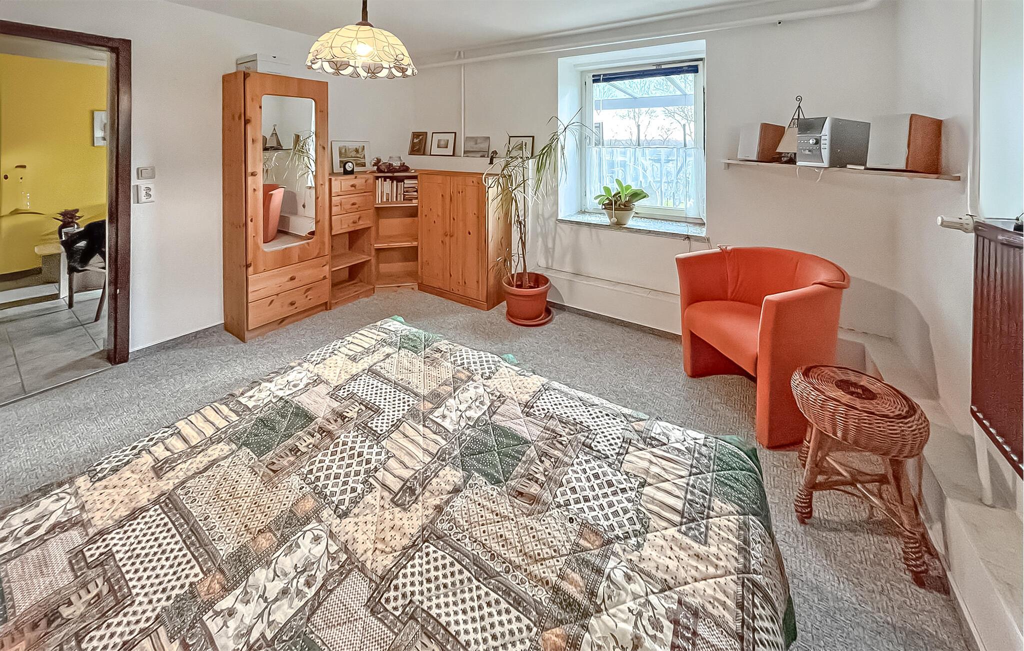 Roligt beliggende i udkanten af ??Woldzegarten, på skråningen af ??søen Tangahner, ligger ferielejligheden med separat indgang i stueetagen af ??en beboelsesejendom på en naturgrund på ca. 100 m². 900 kvadratmeter. Den er kun ca. 350 m til det nyoprettede badeområde. En lille legeplads er ca. 6 km væk (i Kogel eller Roez) finder I yderligere restauranter og butikker i byerne Malchow eller Röbel (ca. 10 km). (Müritz) ligger 24 km væk. Den cirka 45 kvadratmeter store, centralopvarmede ikke-ryger lejlighed, som er delvist renoveret i 2023 og udstyret med insektbeskyttelse på vinduerne, har opholdsstue i indgangspartiet (gennemgangsrum) med en sovesofa, fladskærms-tv og meget mere radio, et separat køkken (renoveret i 2023, spiseplads, el-komfur med ovn, køleskab, opvaskemaskine, mikroovn, kaffemaskine, brødrister, elkedel), et soveværelse (dobbeltseng) og en badeværelse renoveret i 2023 (bruser på gulvniveau, håndklædeholder). varme, toilet). Lejlighedens trumfkort er den store, møblerede udestue med udsigt til søen, som kan åbnes helt fortil og til siden. Der er også grill, robåd, cykelopbevaring, parkering og gratis trådløs internetadgang. Slutrengøring og vand er inkluderet i den samlede pris samt energiforbrug. Medbring venligst eget sengelinned og håndklæder. Kæledyr: Én hund er tilladt i denne ejendom (bemærk venligst: ejerne har en børnevenlig hund og katte).