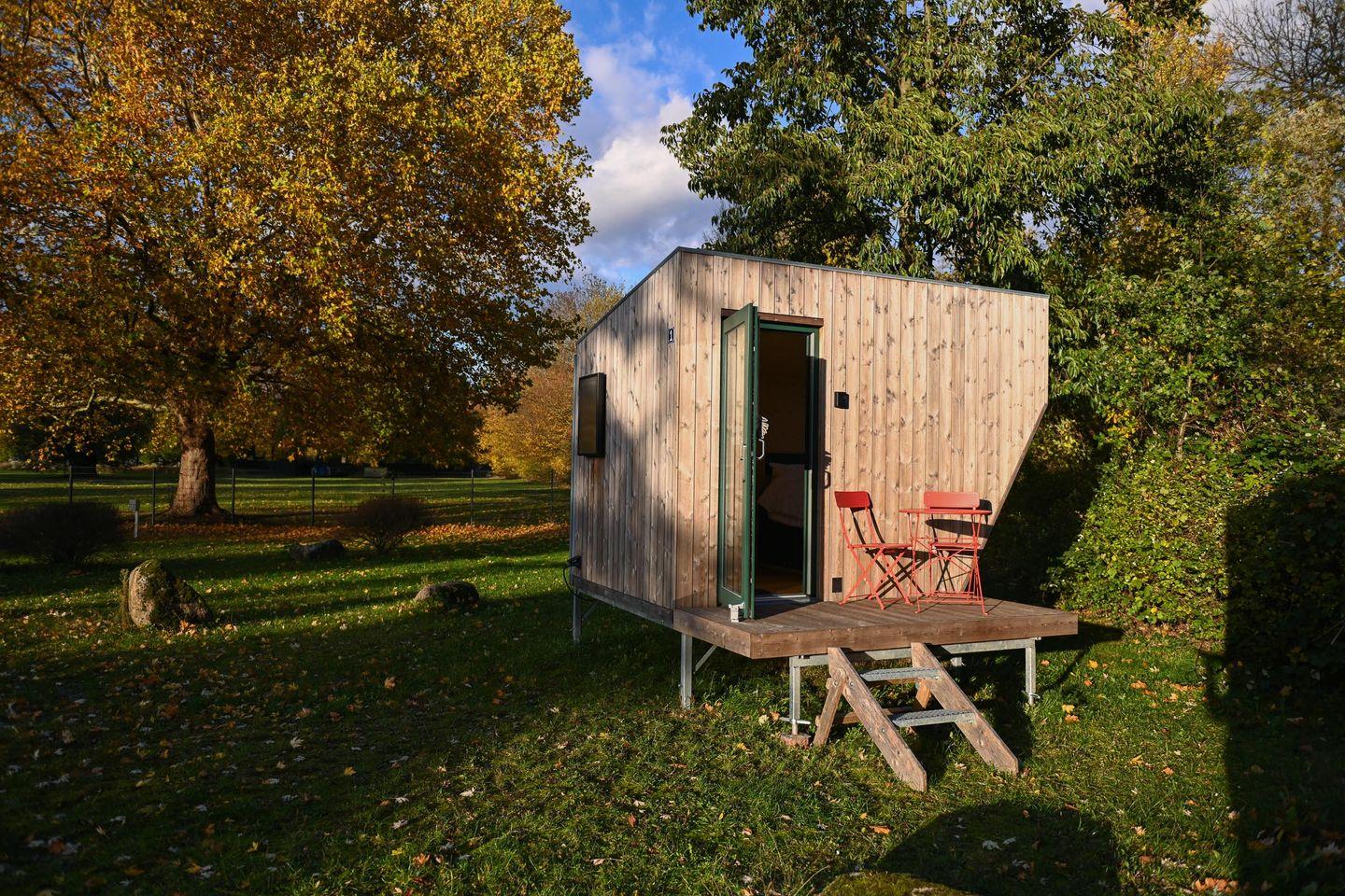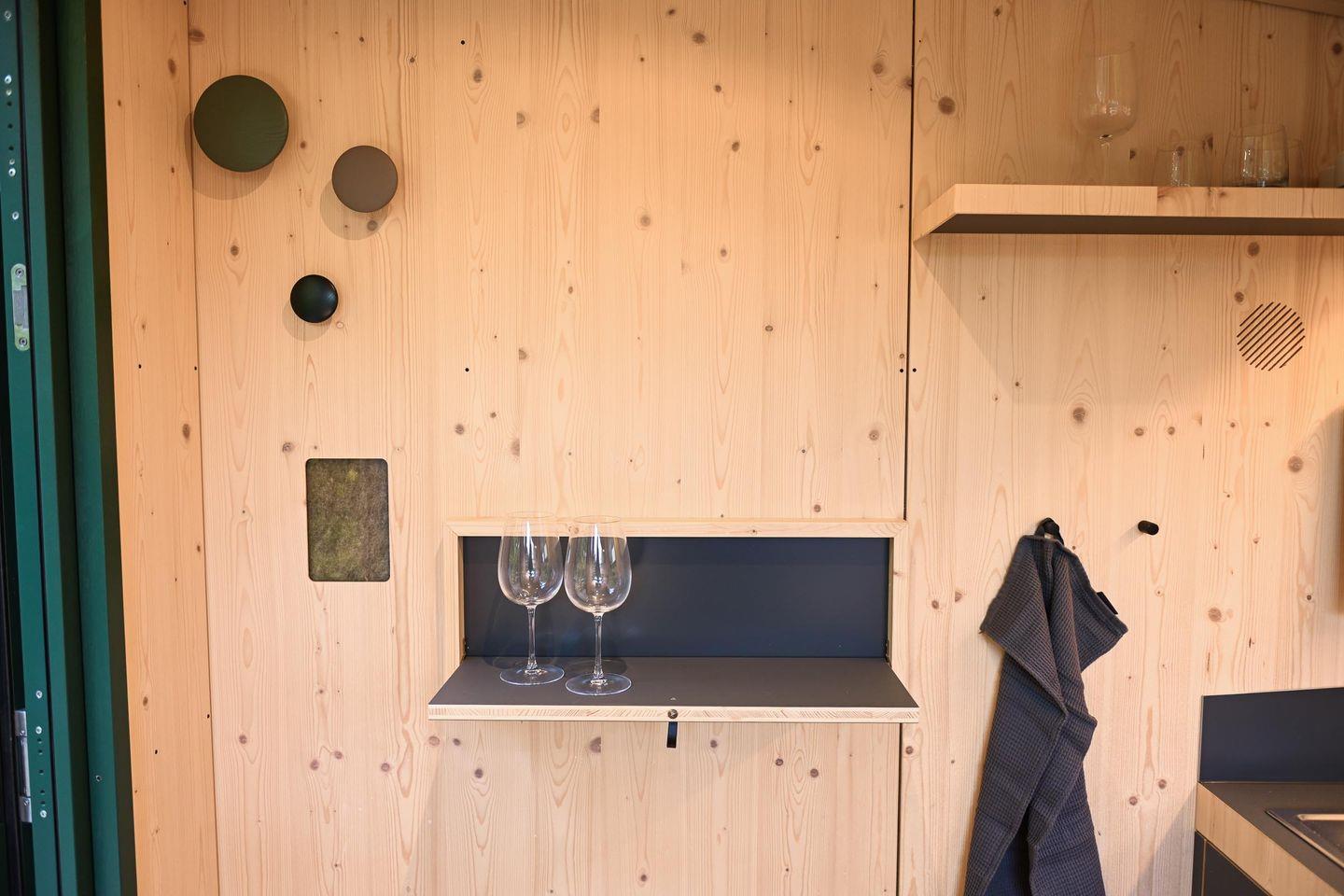 Dein Sleep Space steht naturnah auf einer grünen Fläche und eröffnet durch das große Panoramafenster einen beruhigenden Blick ins Umland. Vögel, Bäume und wechselndes Licht begleiten dich durch den Tag. Das Cabin stammt von Green Tiny Houses und wurde nachhaltig gebaut: auf einem Trailer, ohne Bodenversiegelung, gedämmt mit natürlichen Materialien und mit einem klaren, zeitlosen Design. Genau dieser bewusste Minimalismus macht den Aufenthalt so besonders.