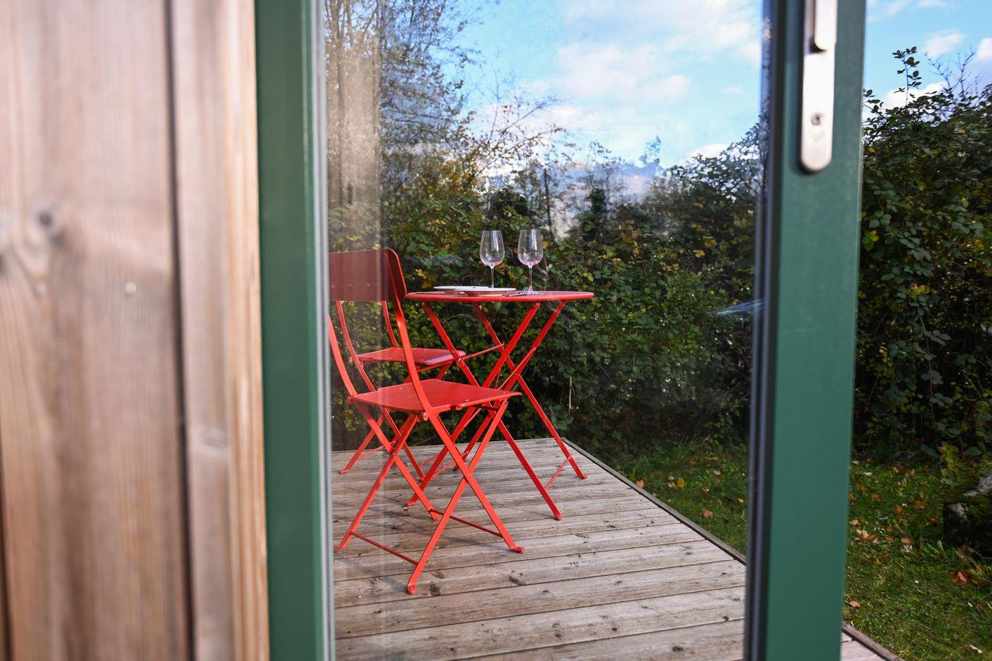 Nach einem Tag voller Eindrücke kehrst du zurück in dein Sleep Space, setzt dich auf die Loungefläche, blickst durch das Panoramafenster ins Grüne und lässt den Tag langsam ausklingen. Kein Bildschirm, kein Lärm – nur Ruhe, Natur und das Gefühl, ganz bei dir zu sein.
