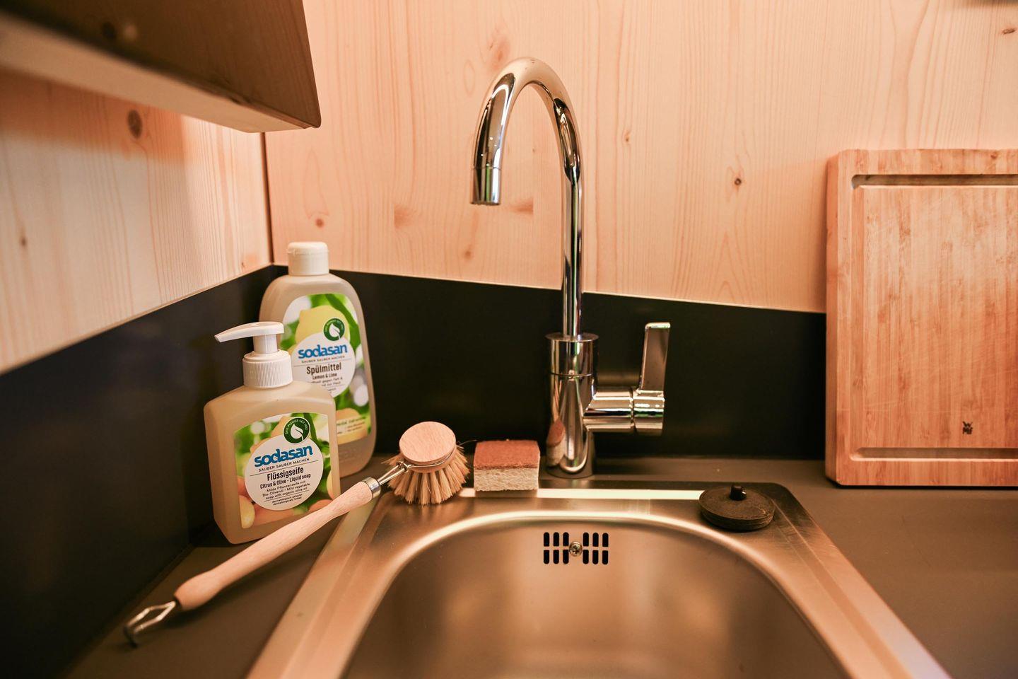 Die kleine Kochnische im Sleep Space ist kompakt und funktional gehalten. Sie eignet sich ideal für einfache Mahlzeiten und Getränke zwischendurch. Gleichzeitig lädt die Umgebung dazu ein, bewusst draußen zu sein oder das gastronomische Angebot der Stadt Wolfenbüttel zu entdecken. WLAN gibt es in der Unterkunft derzeit nicht – ein bewusster Vorteil für alle, die Digital Detox suchen und sich ganz auf den Moment, die Natur und sich selbst konzentrieren möchten.