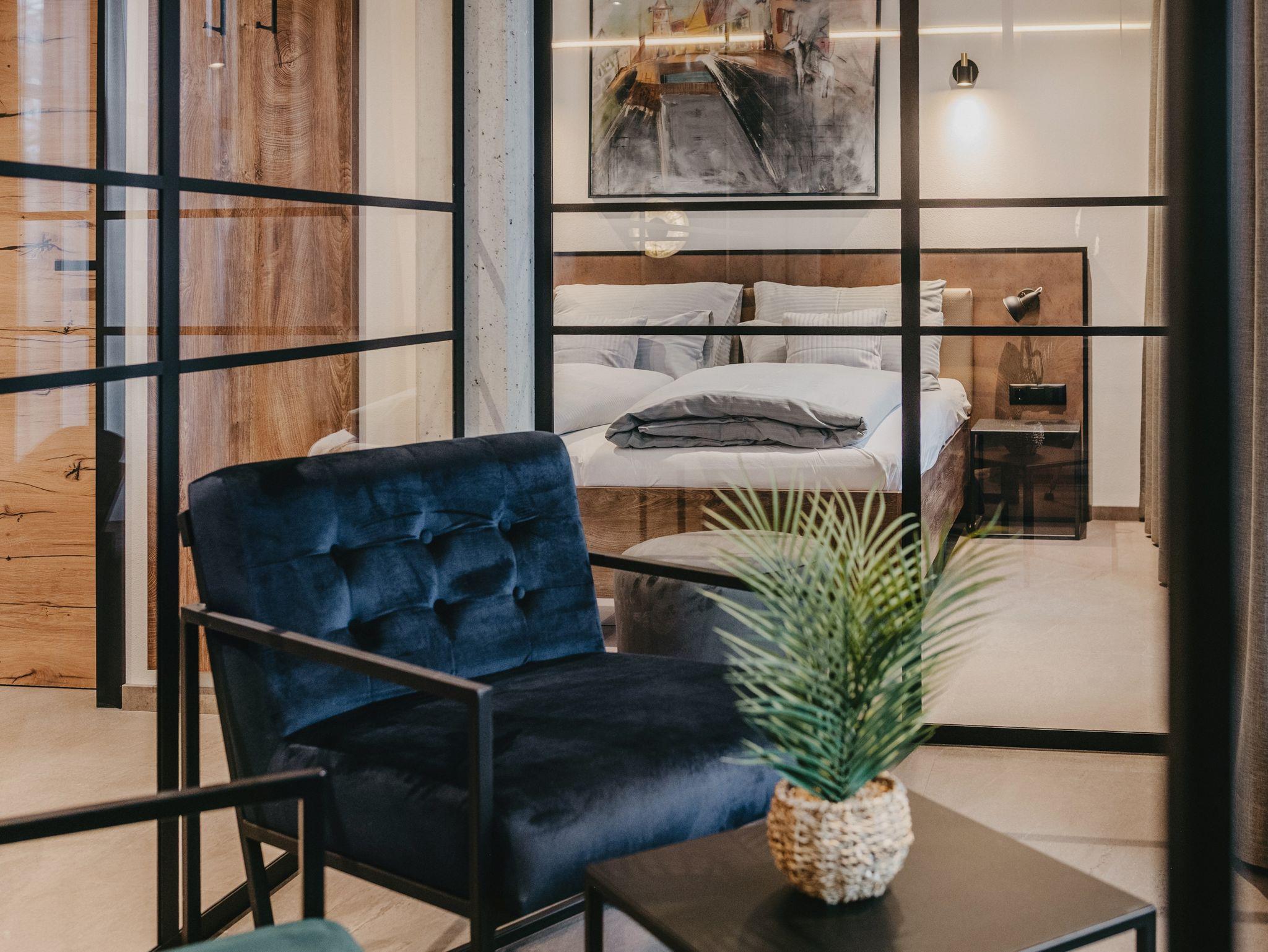 Unsere geräumige City Side Suite Loft bietet perfekte Voraussetzungen für einen Aufenthalt mit der Familie oder in kleiner Runde. Sie ist ideal für bis zu 4 Personen (z.B. 2 Erwachsene und 2 Kinder, wobei ein Platz als Schlafcouch im Wohnbereich genutzt wird).